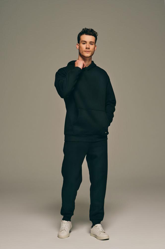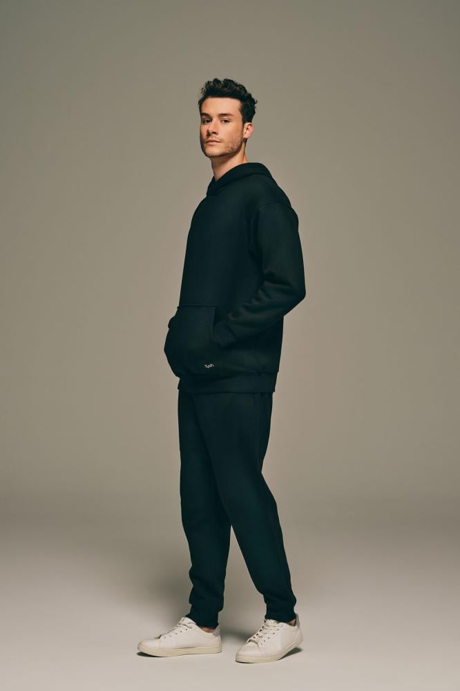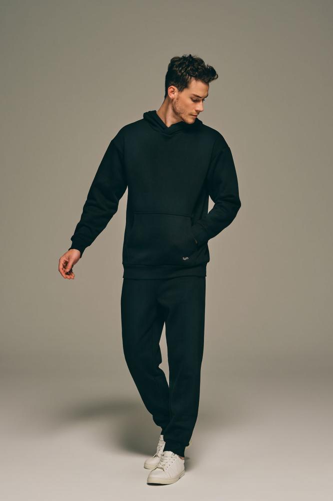 بدلة منزلية من الساتان القطني للرجال باللون الأسود