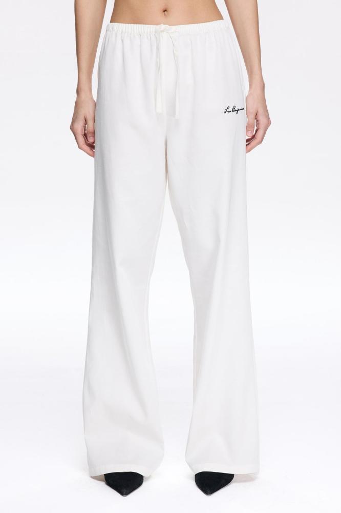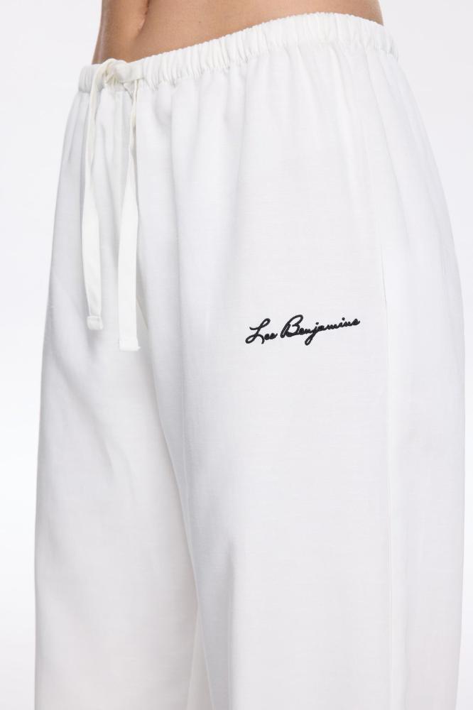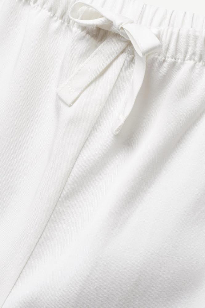 بنطال كتان 401 الأبيض خيار مثالي لكل سيدة تحب النعومة والبساطة الأنيقة! تصميم مريح مع خصر برباط قابل للتعديل يضبط حسب مزاجك، وتطريز أمامي ملفوف يضفي لمسة أنثوية مميزة. اللون الأبيض النقي يفتح لك خيارات تنسيق متعددة من الصبح إلى الليل، والراحة تنبع من خامات فاخرة تجمع بين التنسل، القطن، والكتان 🥥