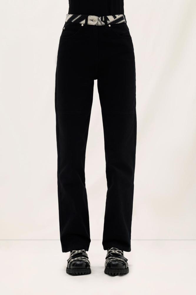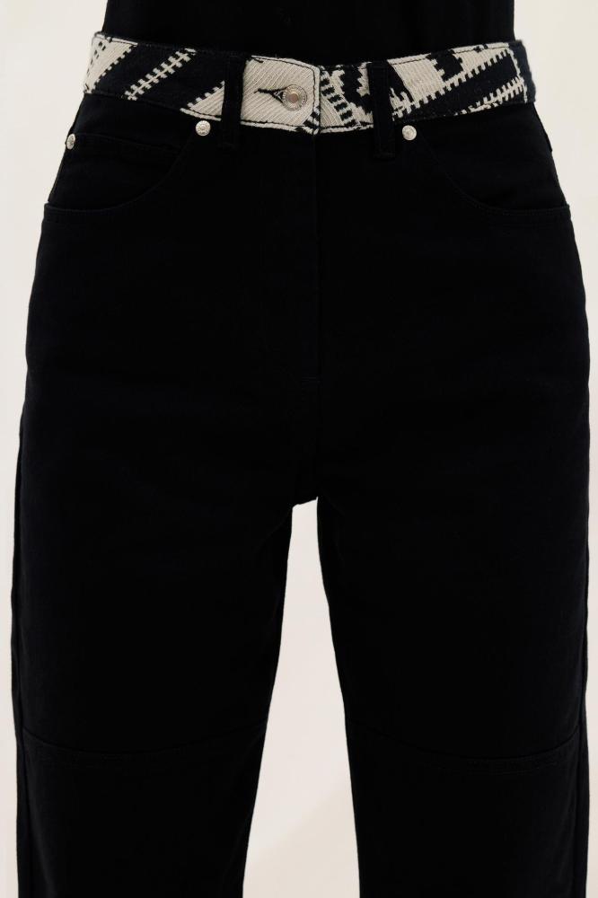 لو كنتِ تحبين الستايل اللي فيه لمسة تقليدية بطابع عصري، فهذا البنطال بيكون حليفك الجديد 🧱! تصميمه الأسود الأنيق مزين بحزام بنقشة بدوية تعطيه هوية، مع أزرار فضية وسحاب قدّام تضيف لمسة جرأة 🌬️. يجمع بين التميز والراحة بشكل ما ينوصف!