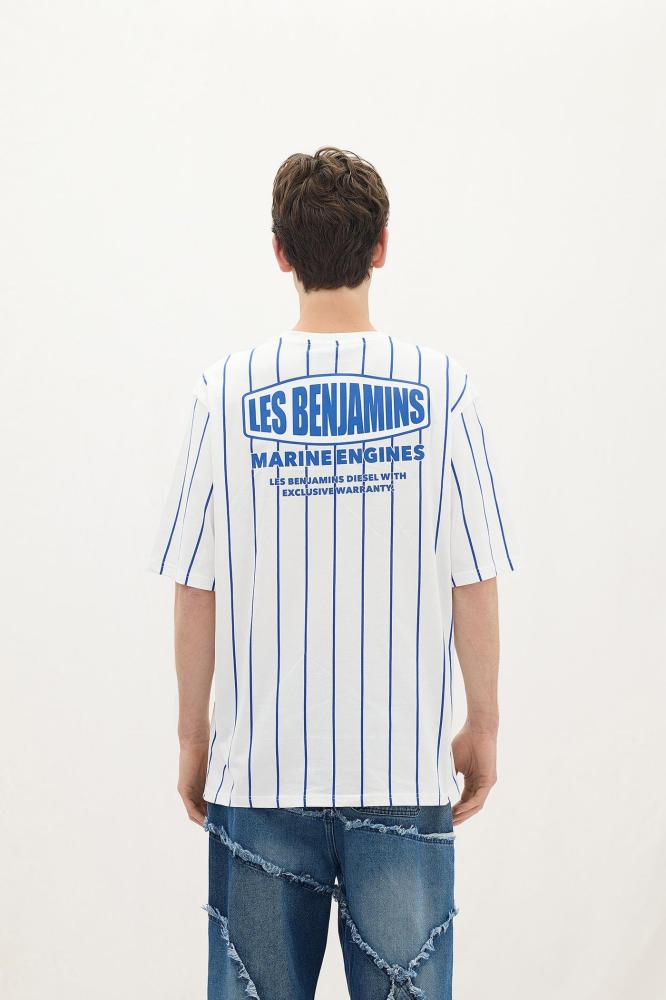 هالتيشيرت من LES BENJAMINS يعطيك حرية حركة رهيبة بفضل قصته الواسعة ورقبة دائرية مضلعة، والقماش القطني خفيف وناعم على الجلد. الطباعة الجرافيكية للعلامة التجارية على الصدر والظهر مع خطوط ممتدة في كل أنحاء التيشيرت تعطيك شكل شبابي وعصري، يركب مع أي ستايل يومي أو خروجات مع الأصحاب 🤍
