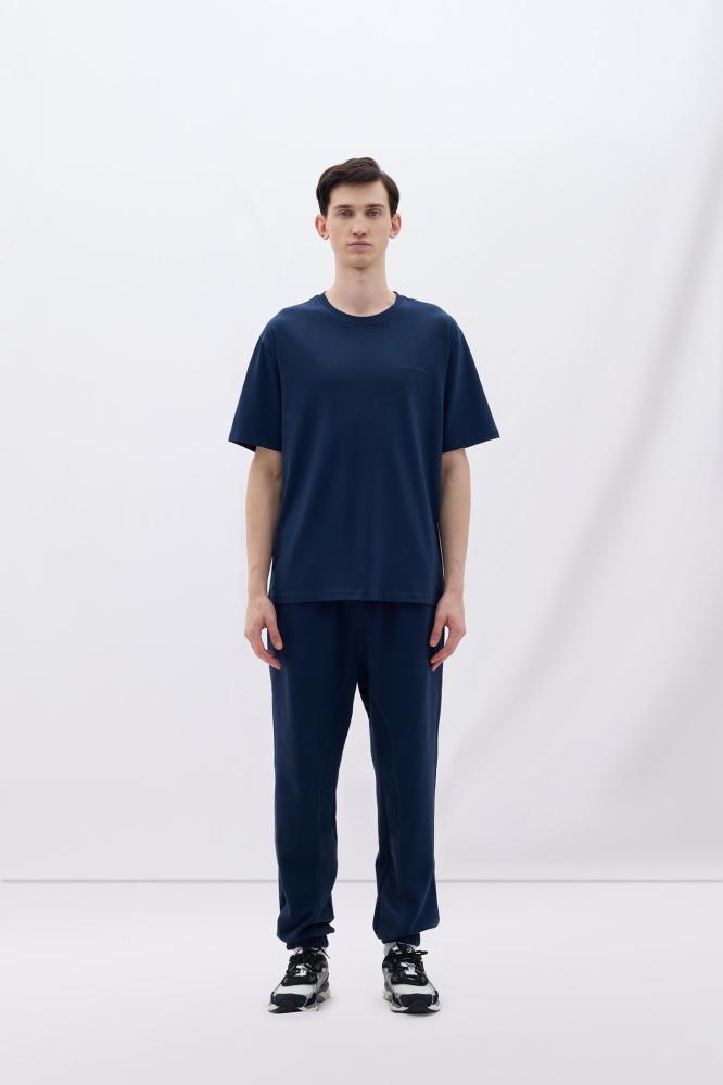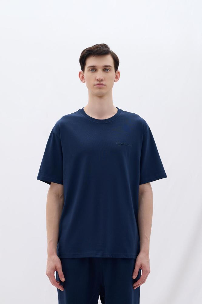 تيشيرت رجالي مريح – أزرق داكن – رجالي – قطن 100٪ بقصة مريحة – شعار Les Benjamins مطبوع على الصدر – Les Benjamins – تركي أصلي