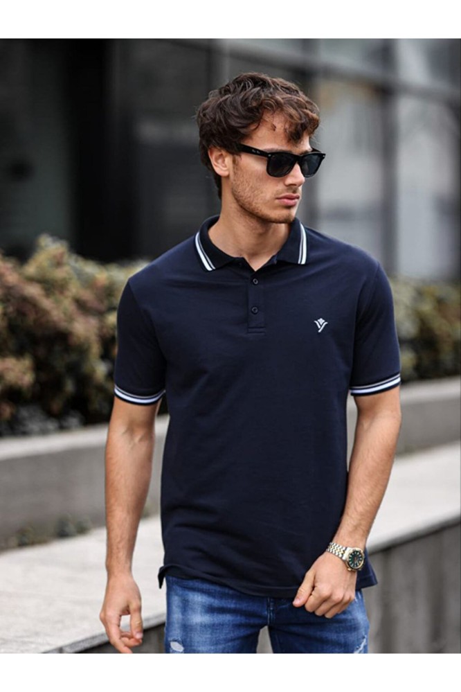تيشيرت رجالي كحلي بياقة بولو من aziso - أصلي