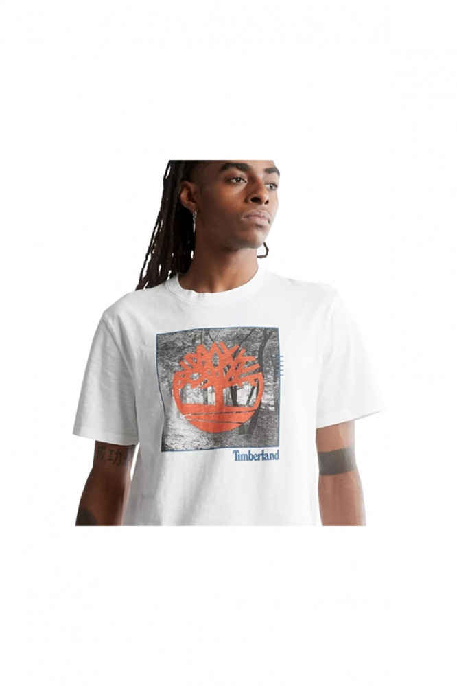 تي شيرت رجالي أبيض برسمة مطبوعة من Timberland- أصلي