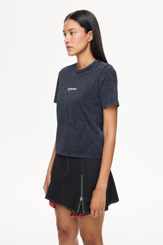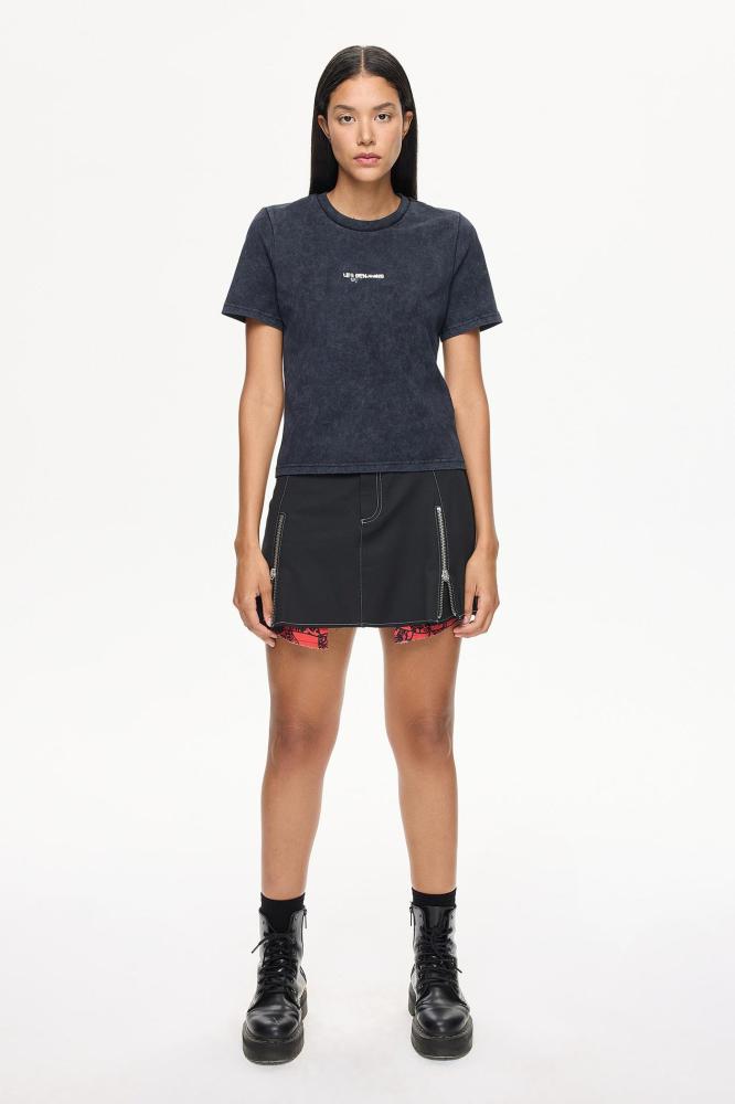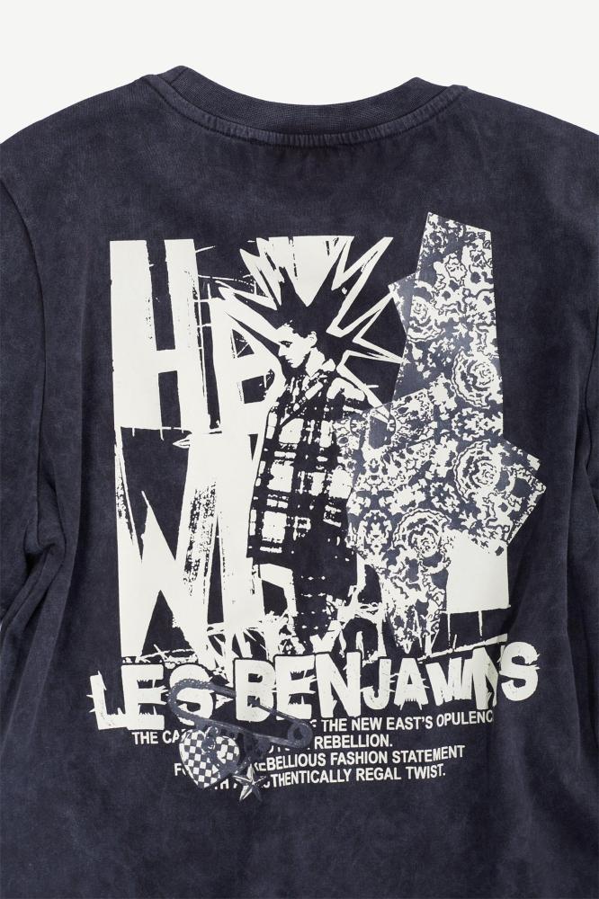 تيشيرت نسائي عادي من Les Benjamins، مع رقبة دائرية مضلعة وتأثير رذاذ يضفي لمسة فنية على التصميم. طبعة العلامة التجارية الموسمية على الصدر وطباعة جرافيكية موسمية على الظهر تجعل التيشيرت قطعة فريدة ومميزة. القماش 100% قطن ناعم ومريح، يمنحك حرية حركة وراحة طوال اليوم 🖤.