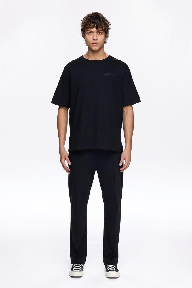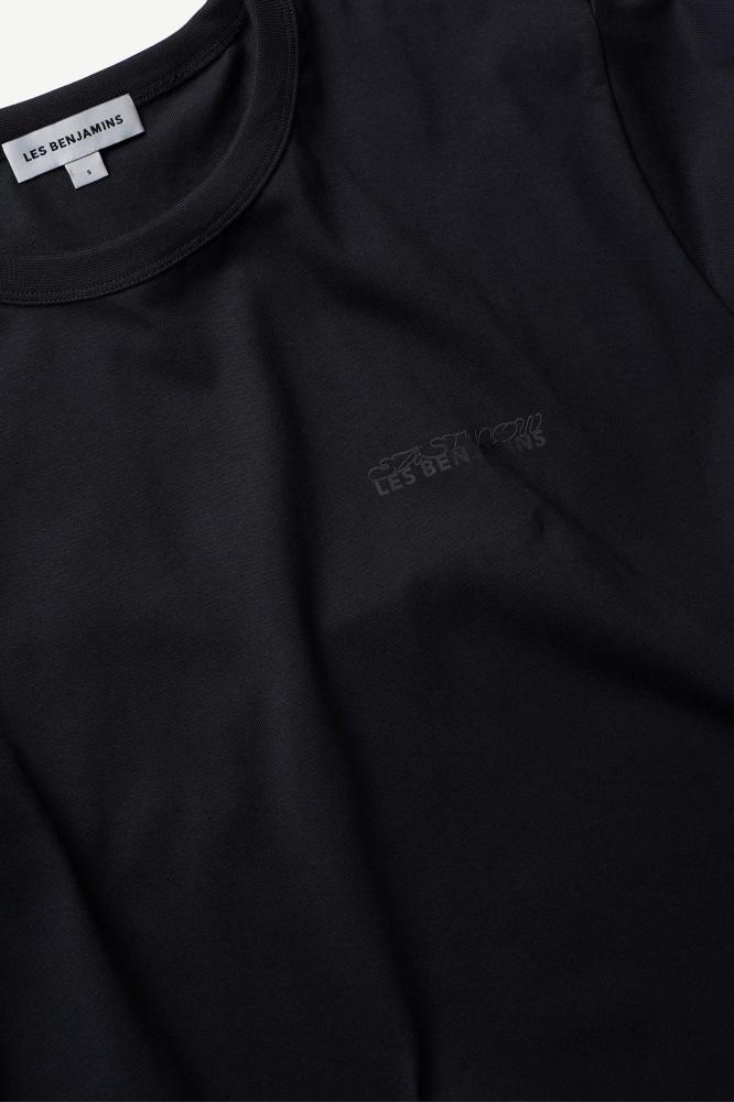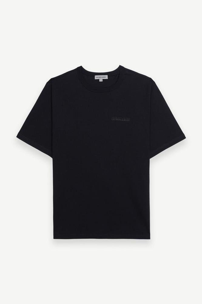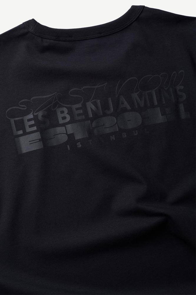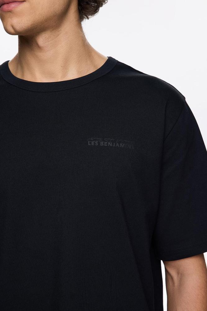تي شيرت Les Benjamins الأسود بأكمام قصيرة، مريح وقماش القطن 100% ناعم يخليك تحس بالراحة طول اليوم. الرقبة الدائرية تعطي لمسة كلاسيكية، وعلامة البراند على الصدر الأيسر مع الطبعة الموسمية المنفوخة على الظهر تضيف أسلوب فريد ويعكس شخصيتك.