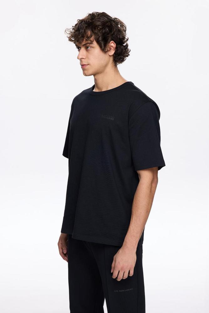 تي شيرت بأكمام قصيرة قطن أسود – طبعة موسمية بارزة Les Benjamins - تركي أصلي
