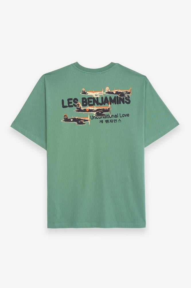 تي شيرت رجالي من Les Benjamins يقدم لك الراحة اليومية بأعلى جودة. القماش 100% قطن ناعم ومرن، التصميم عصري يناسب كل الإطلالات الشبابية، والطبعة على الصدر تضيف لمسة أنيقة بدون مبالغة. مناسب للمشاوير اليومية والطلعات مع الأصحاب، ويخليك دايمًا مرتاح ومميز.