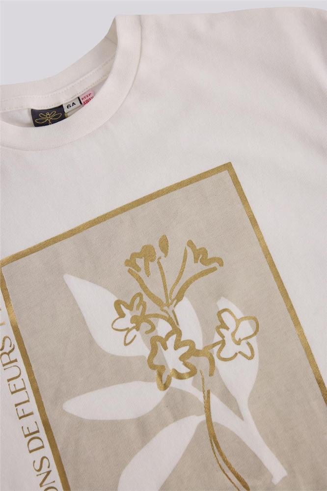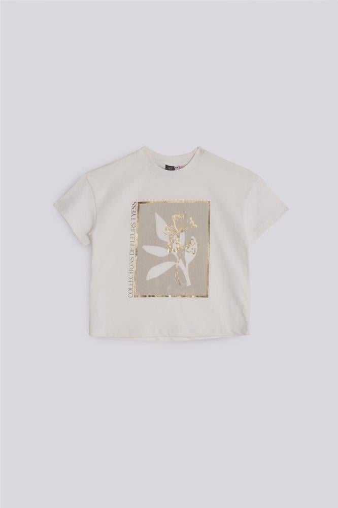 الـ تي شيرت بالزهور المذهبة من تايس هو القطعة الأساسية اللي لازم تكون في دولاب كل بنت تحب الأناقة. تصميم "كيوت" على قماش أبيض نقي يعطي إحساس بالنظافة والانتعاش.