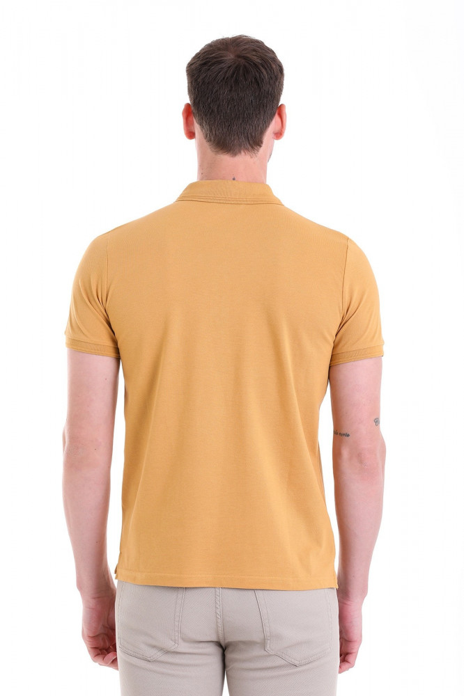 تي شيرت قطن 100٪ بياقة بولو سادة مقاس مريح خردلي ماركة Hatemoğlu