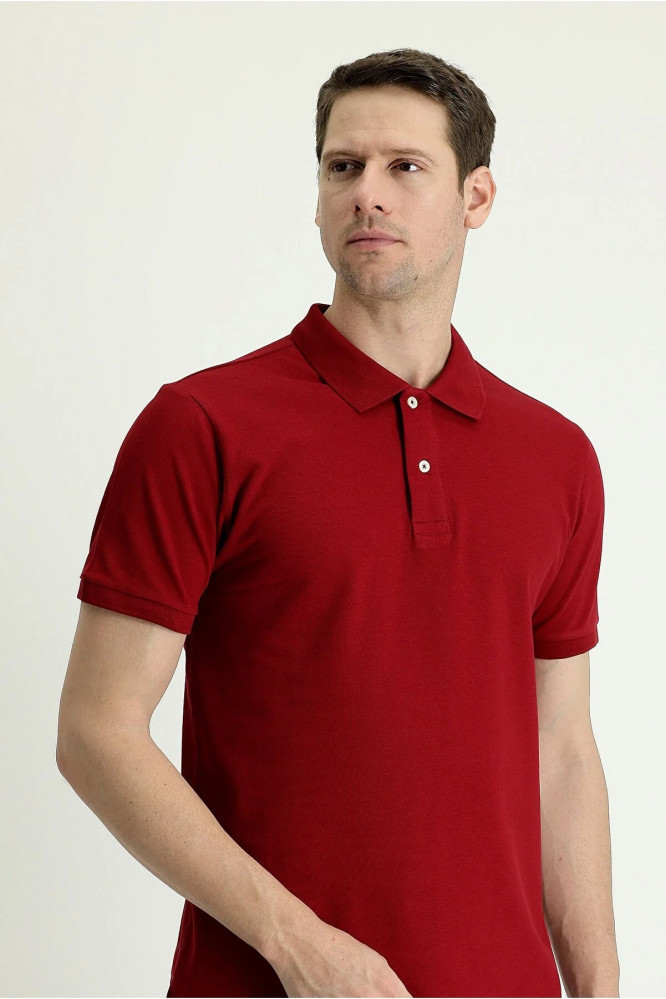 تي شيرت للرجال ياقة بولو لون أحمر داكن ماركة Kigili