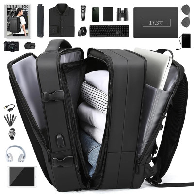 حقيبة ظهر للسفر للرجال ، حقيبة ظهر للكمبيوتر المحمول قابلة للتوسيع مع منفذ USB ، حقيبة كمبيوتر كبيرة مضادة للماء ضد السرقة للنساء