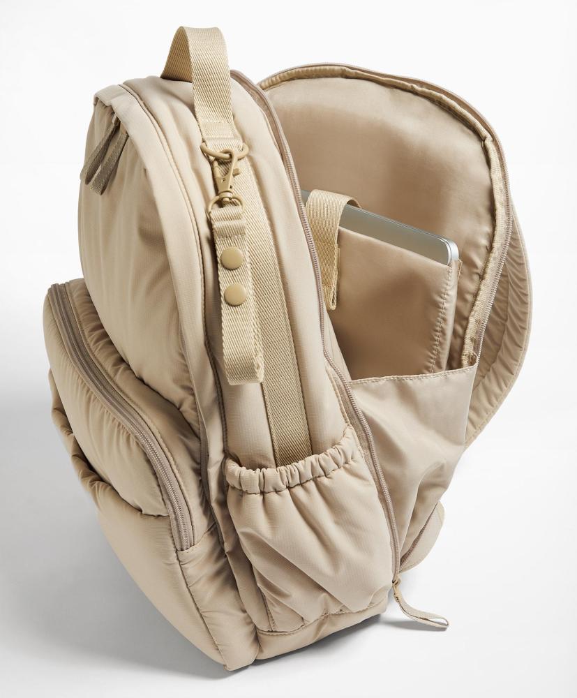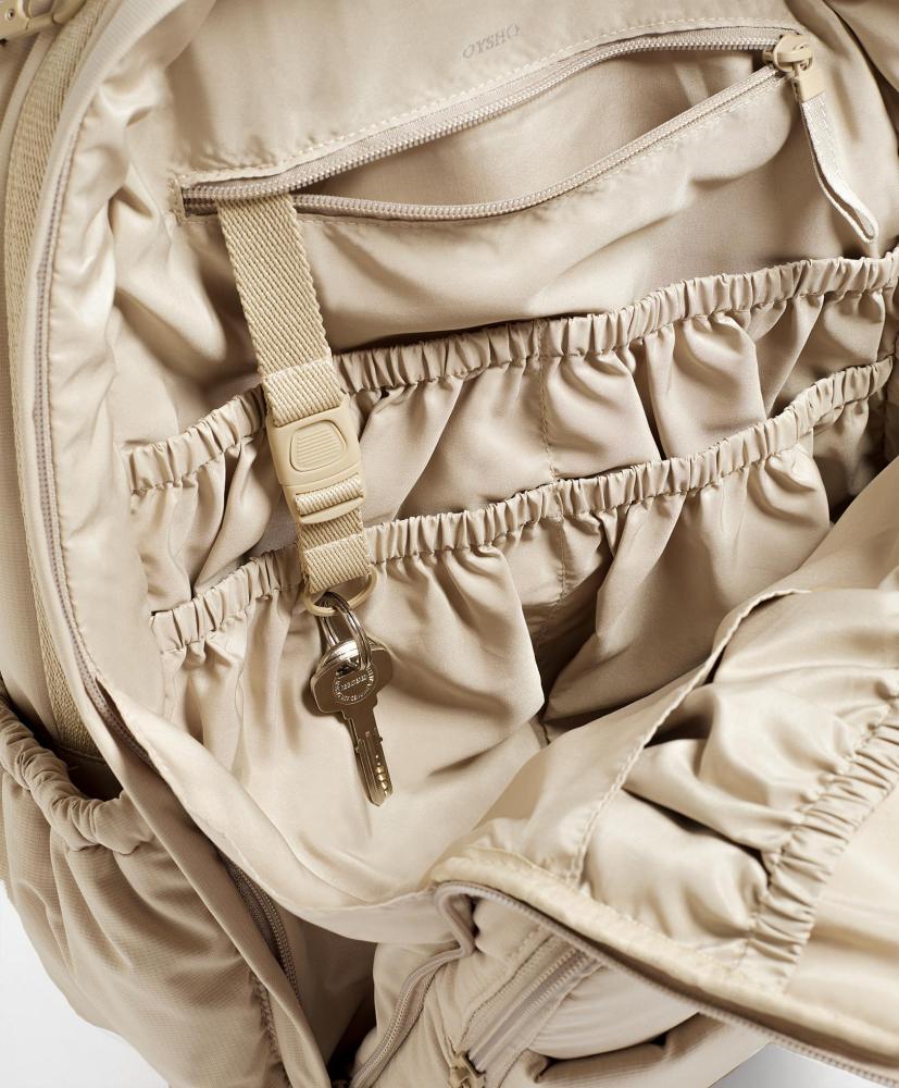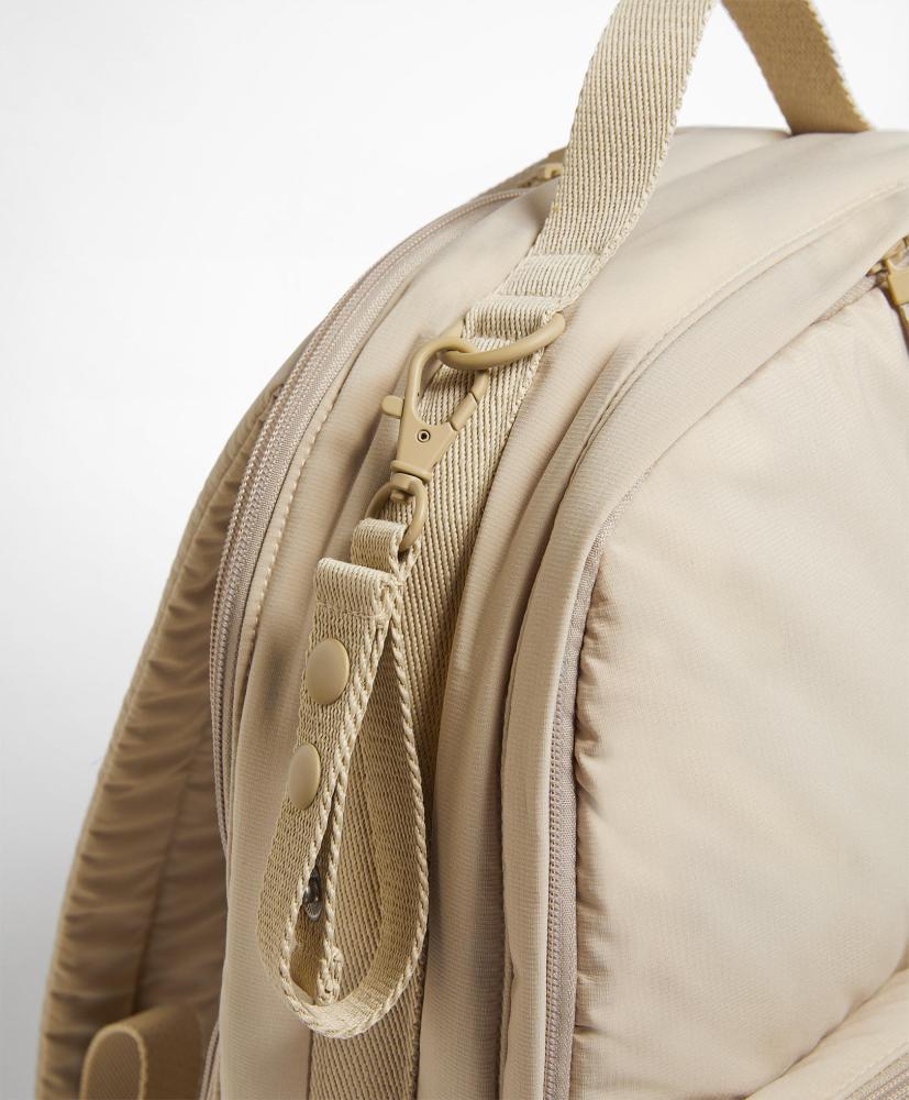 حقيبة ظهر للعناية بالطفل من نسيج النايلون. يوجد 3 جيوب في الأمام. يبلغ حجم الجيب الرئيسي المزود بسحاب للإغلاق 33 × 24 سم وهو مصنوع من مادة معزولة. يوجد أيضًا جيبان فوق بعضهما البعض يغلقان بمغناطيس صغير. يوجد جيبان على الجانبين مغلقان برباط مطاطي. تحتوي حقيبة الظهر على قسمين كبيرين، أحدهما هو القسم الرئيسي والآخر مخفي في الجزء الخلفي من الحقيبة. يحتوي هذا القسم على قسم منفصل لوضع اللاب توب. يحتوي الجزء الداخلي على العديد من الأقسام ذات المطاط والسحابات لتسهيل التنظيم. كما أنها تحتوي على حزام قابل للإزالة لتعليق المفاتيح. الأبعاد الخارجية: 34 سم × 44 سم. العمق: 12 سم
