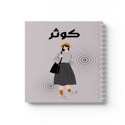 - لمسة شخصية: تصميم خاص باسم "كوثر" يضيف لمسة مميزة لدفترك، يعبر عن شخصيتك الفريدة.