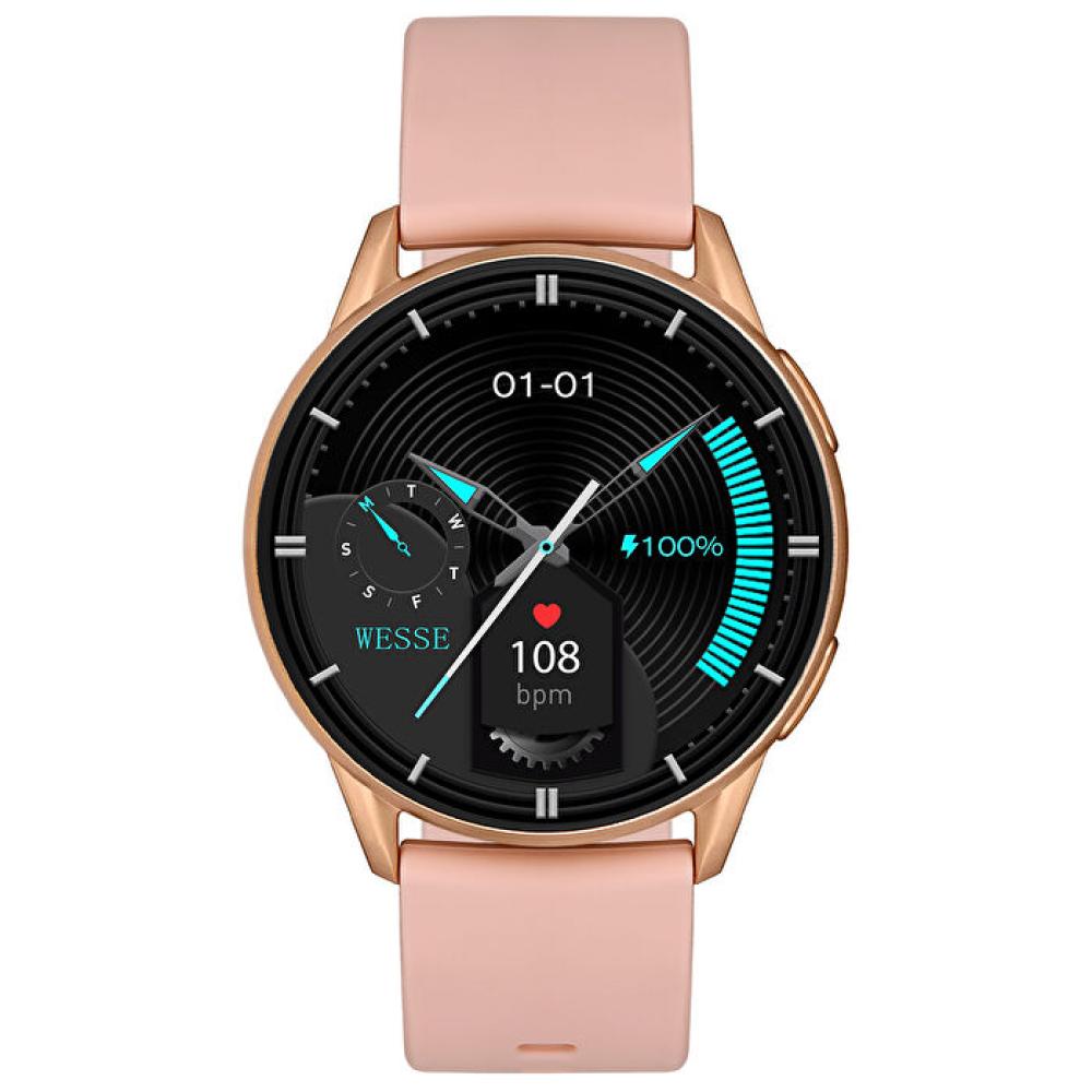 ساعة ذكية نسائية دائرية باللون الوردى من Connect Wesse - أصلى