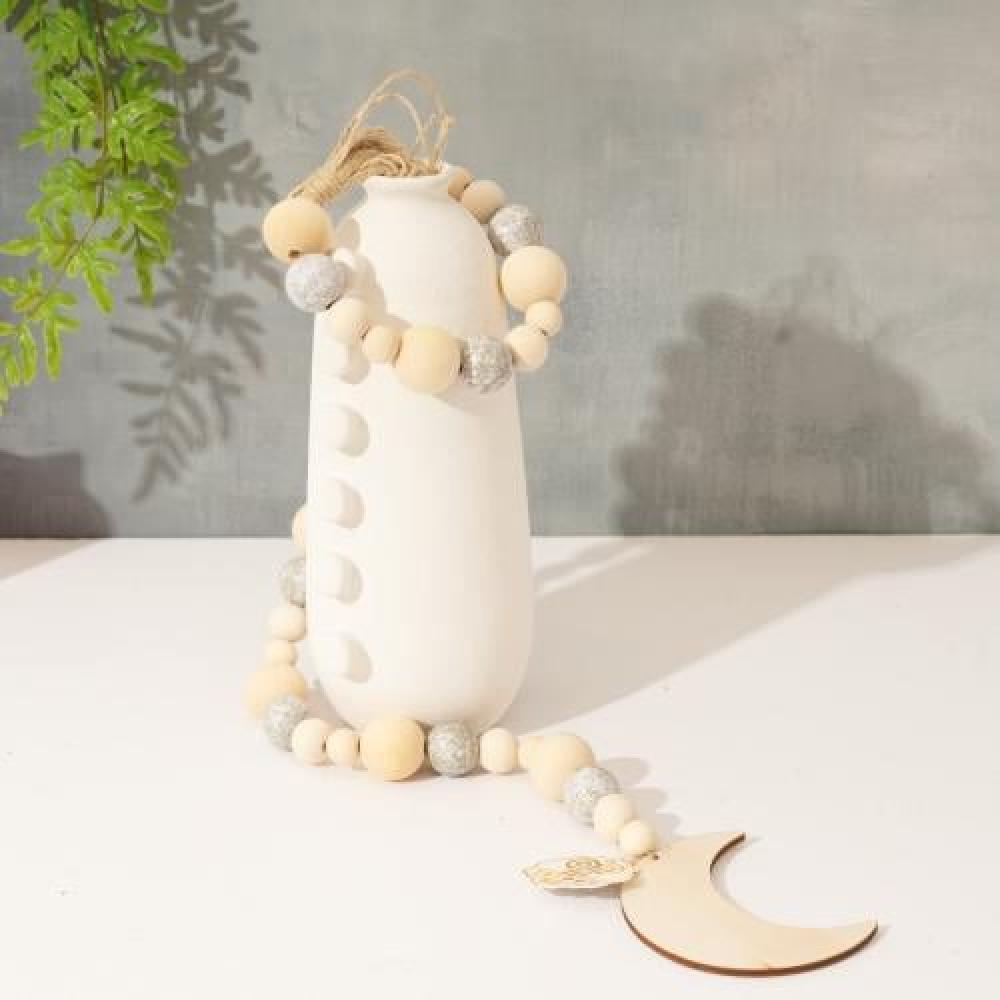سبحة خشب بشراشيب وهلال بتصميم أنيق – لمسة رمضانية فاخرة لمنزلك