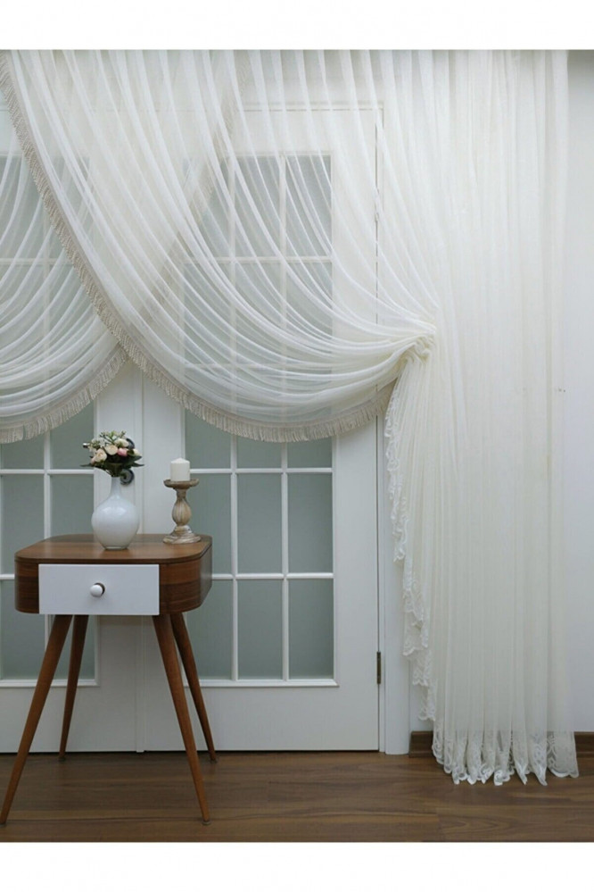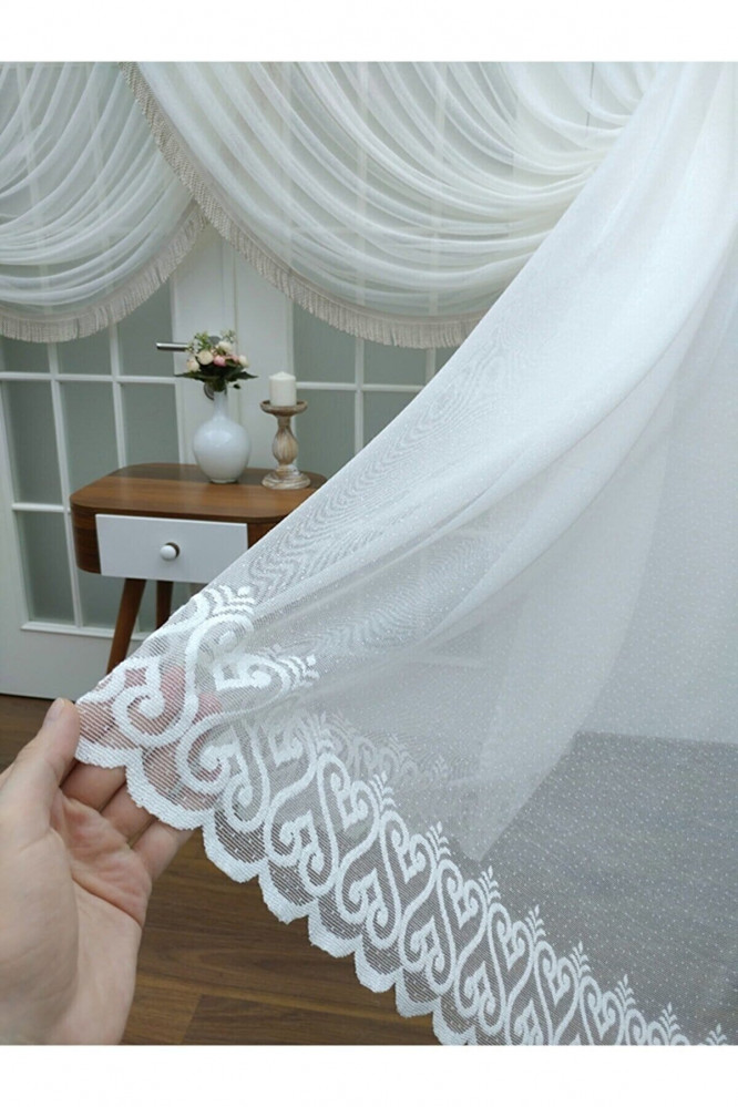 ستارة تول بيضاء منقوشة صدر مزدوج مقاس 300*260 من Elision Home -أصلي