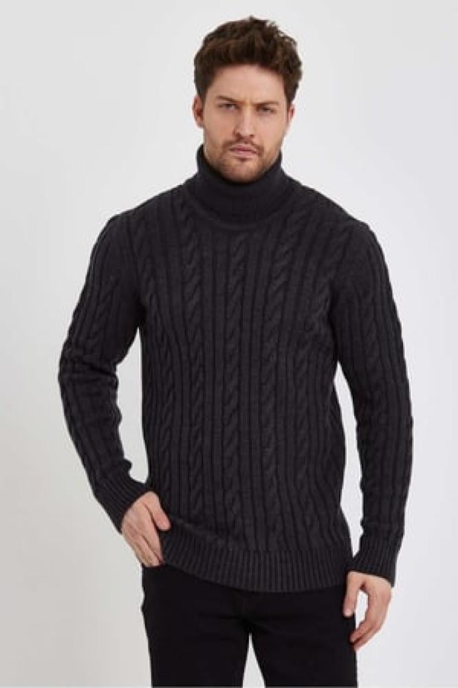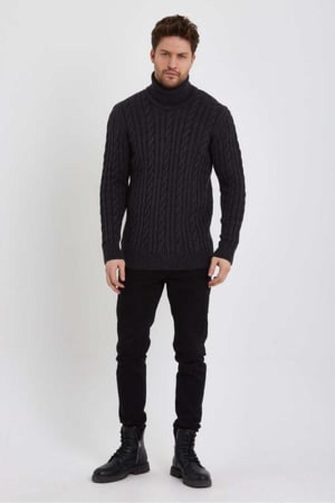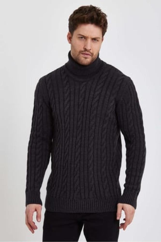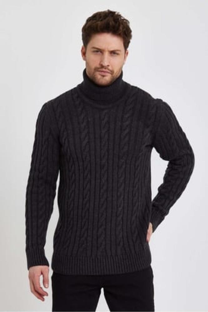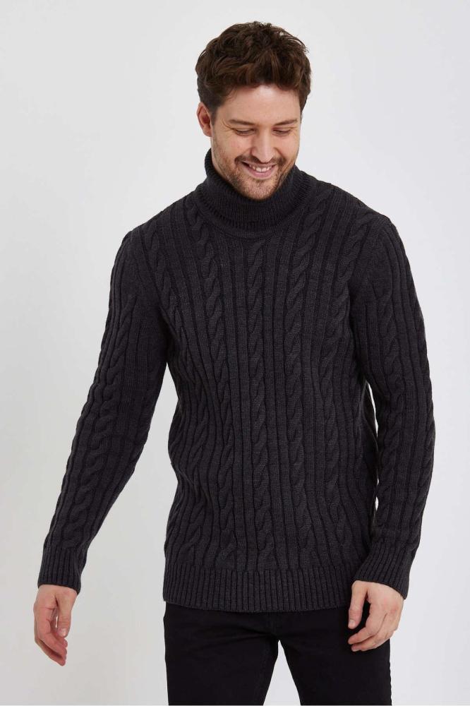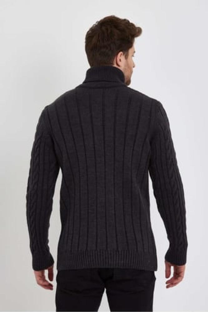 سترة تريكو بياقة مدورة محبوكة للرجال باللون الرمادى الداكن من TARZ CooL