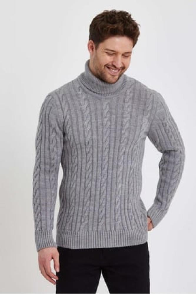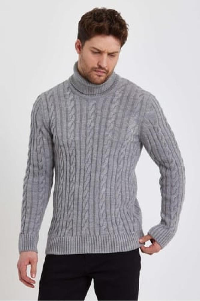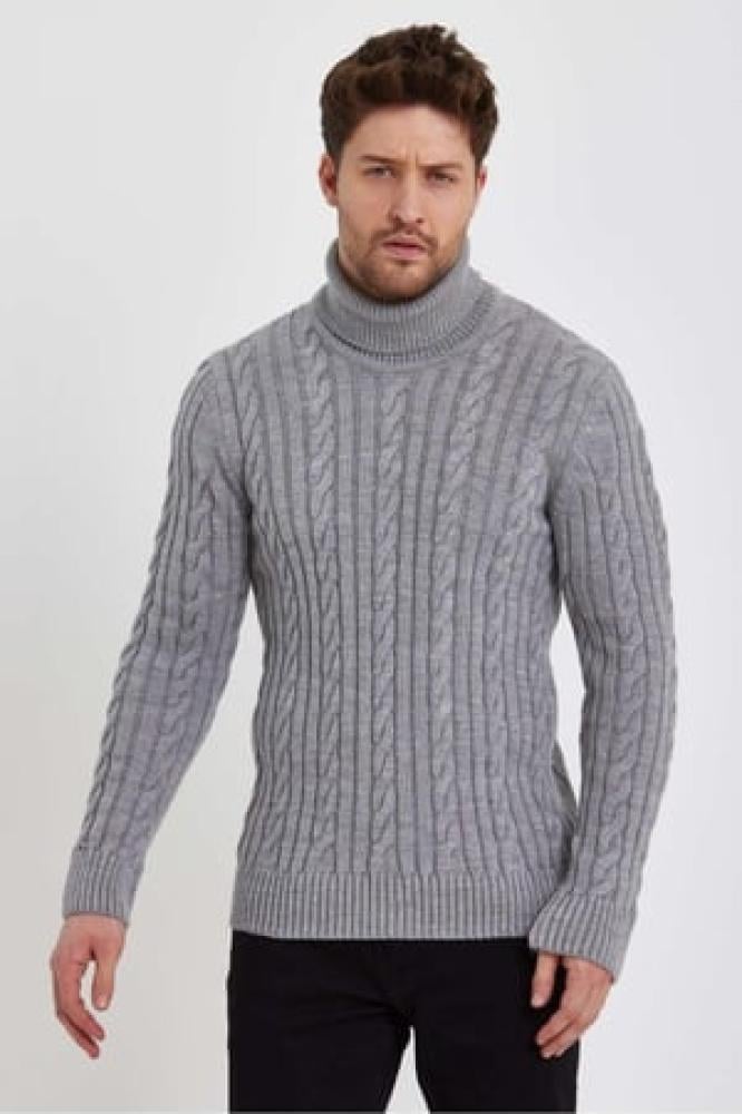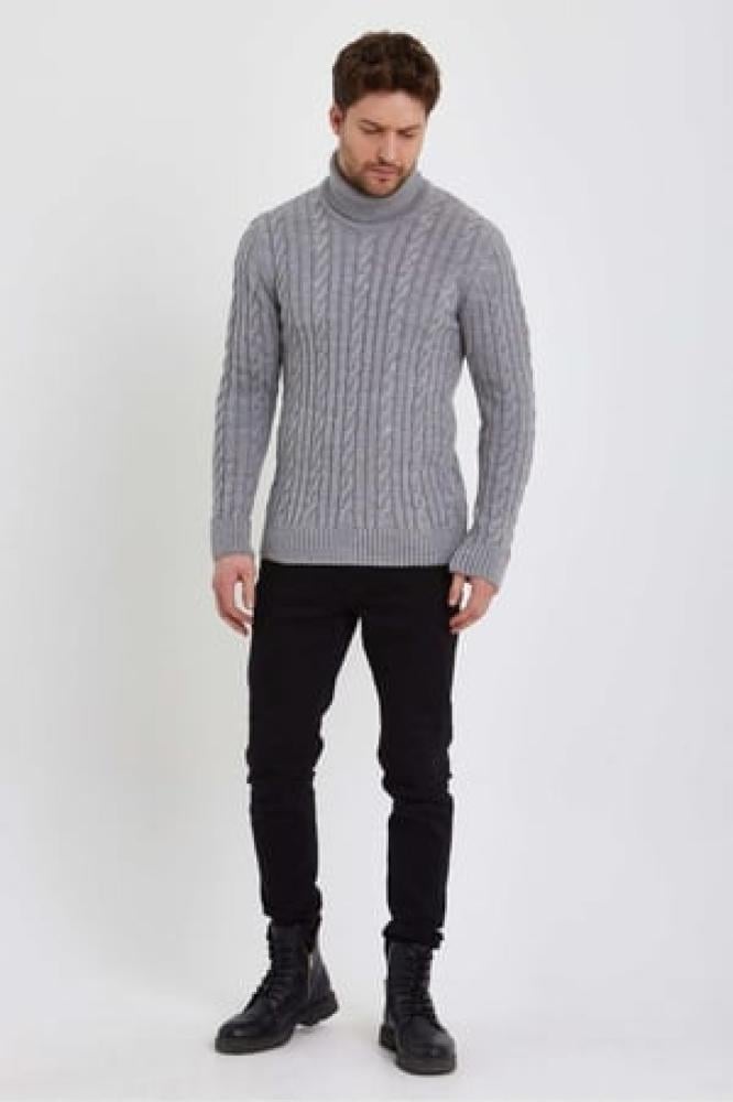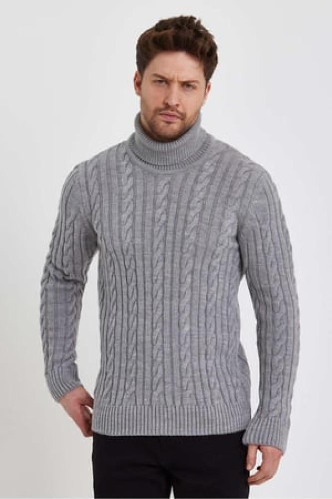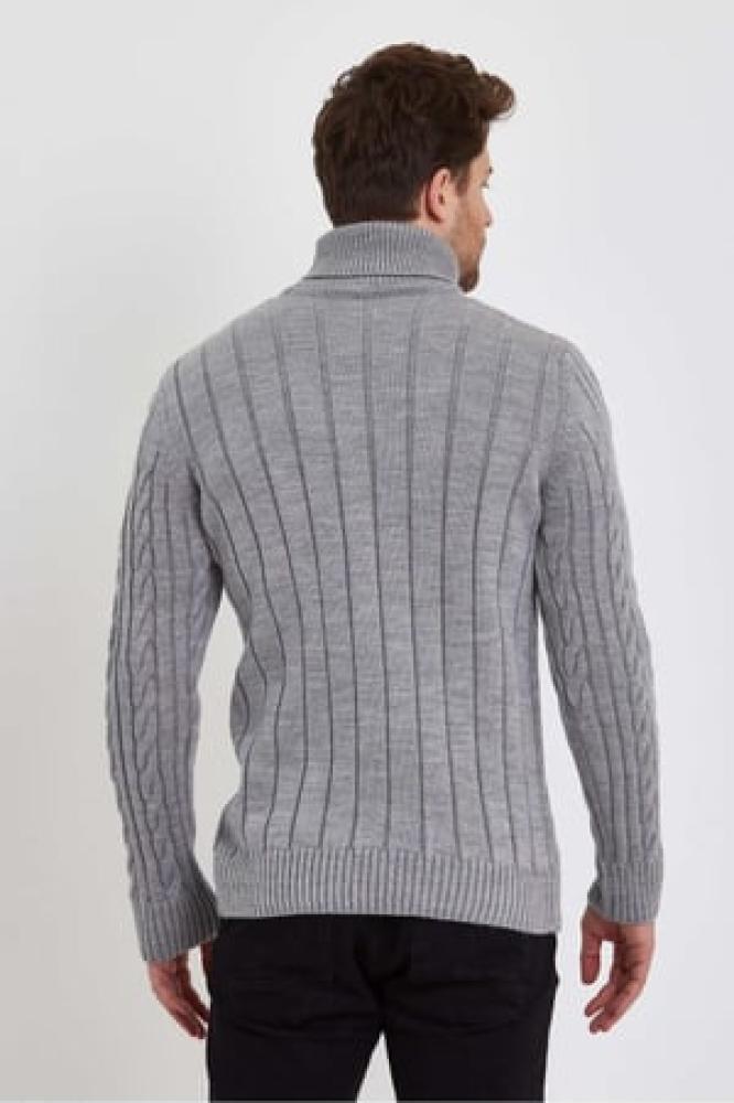 سترة تريكو بياقة مدورة محبوكة للرجال باللون الرمادى الفاتح من TARZ CooL