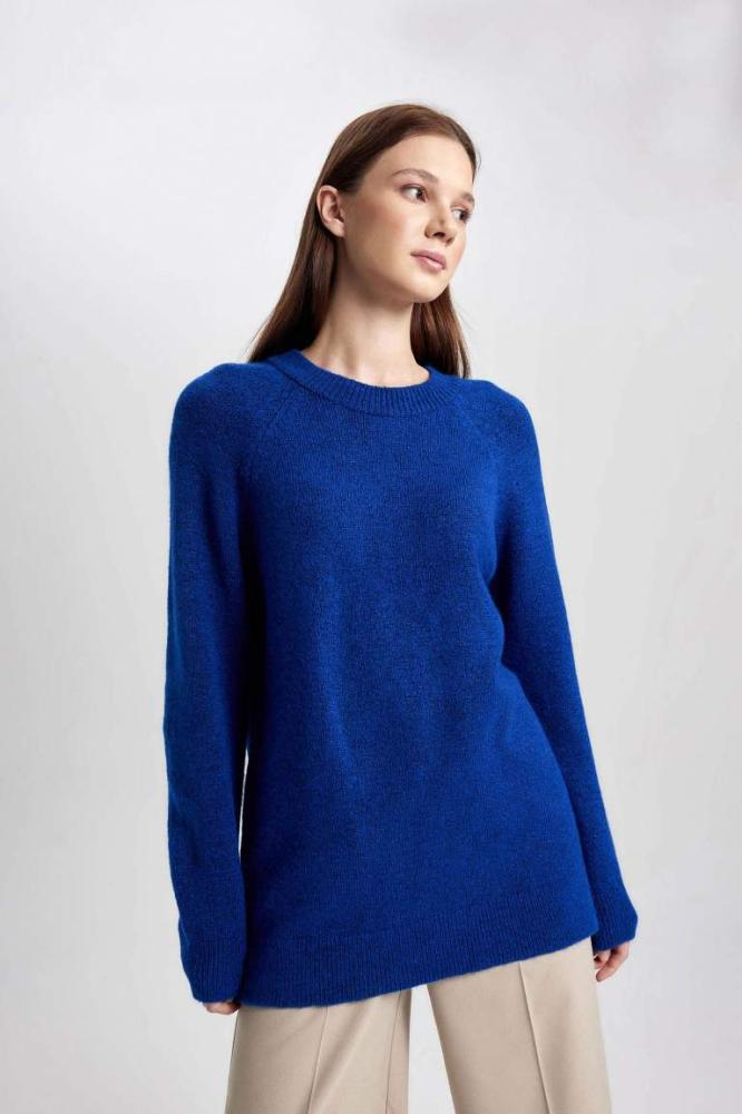 سترة صوفية ذات مقاس عادي باللون الأزرق الزهرى من DeFacto