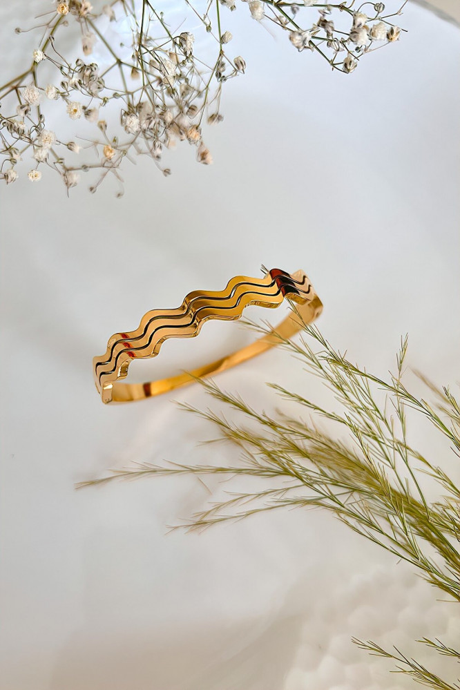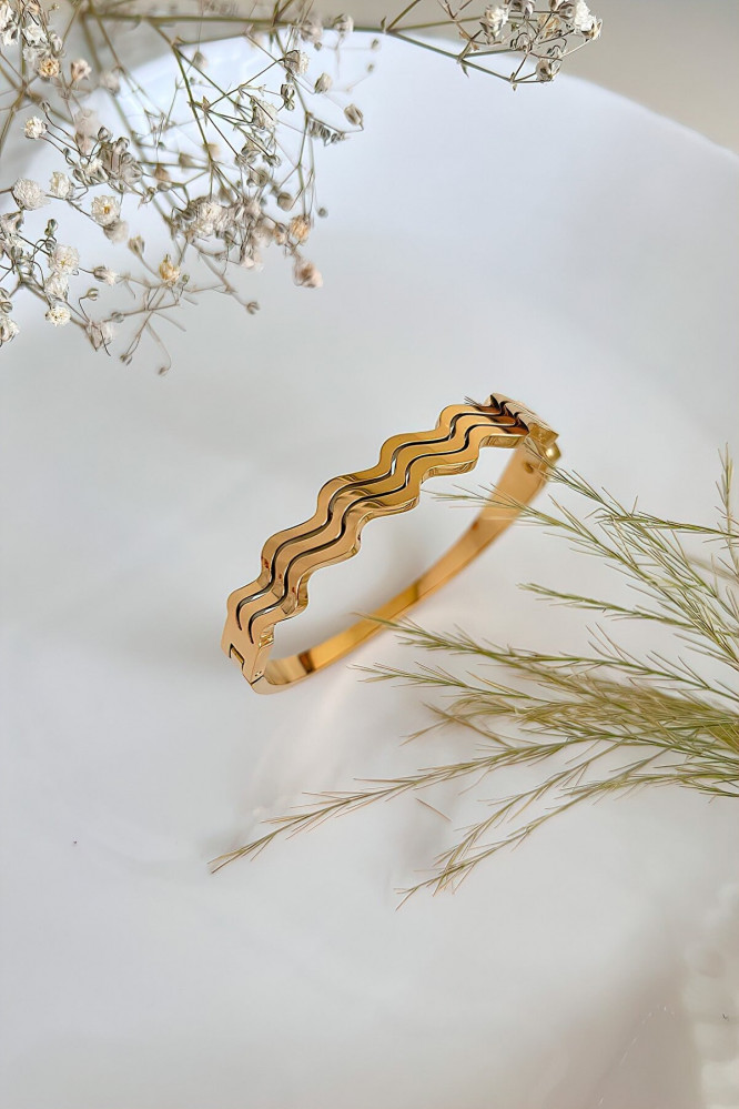 سوار نسائي بلون ذهبي Pruva - أصليالسوار من الفولاذنمط موجة الماء.السوار 18 سمالتوصيل للمنزل من 7 أيام حتى 12 يوم عمل