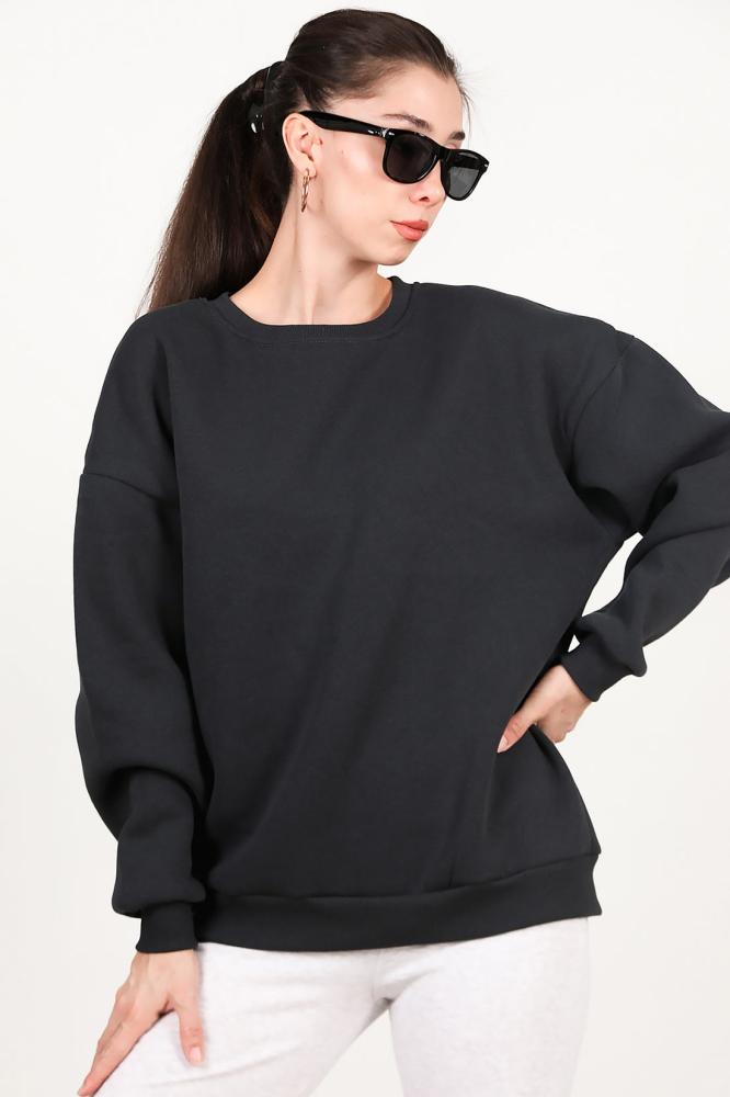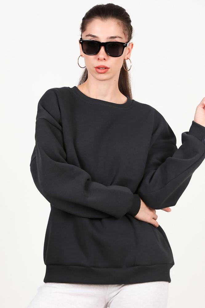 أيام الشتا الطويلة تحتاج قطعة واحدة تقدرين تعتمدين عليها كل يوم، وهذا السويت شيرت الدخان بالضبط اللي تدورين عليه. صناعة تركية احترافية بخامة قطنية فاخرة مخلوطة مع بوليستر تخلي القطعة تفضل معك سنين بنفس الجودة. الثلاثة خيوط الكبيرة مو بس شكل حلو، هي فعلاً تسويلك عزل حراري يخليك دافية من غير ما تحسين بثقل أو ضيق. اللون الدخان الحيادي يفتح لك خيارات تنسيق ما لها حدود، سواء رايحة للدوام أو قاعدة بالبيت.