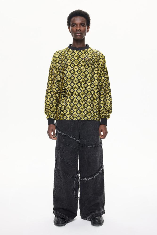 سويت شيرت رجالي أصفر منقوش من Les Benjamins يعطيك مزيج مثالي بين الراحة والستايل المميز. مصنوع من خامة عالية الجودة تجمع بين البوليستر والقطن لتعطيك نعومة ومرونة بنفس الوقت. القصة العادية تخليك مرتاح طول اليوم، واللون المنقوش يضيف لك حضور شبابي لافت يخليك دايمًا مميز.