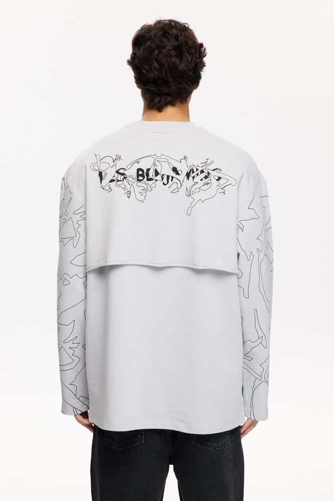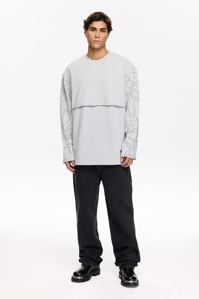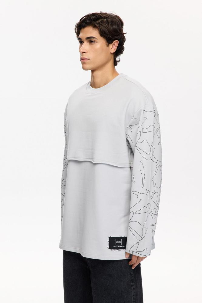 سويت شيرت رجالي رمادي مريح خامة ناعمة تصميم عملي Les Benjamins تركي أصلي