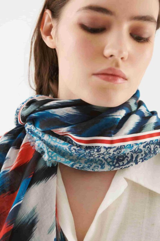 هالشال النسائي الملون من ROMAN مصنوع من خامات مميزة تجمع بين القطن والحرير والمودال، ليمنحك إحساس بالراحة والنعومة. تصميمه العصري يضيف لمسة أنيقة لكل إطلالاتك اليومية أو الكاجوال.