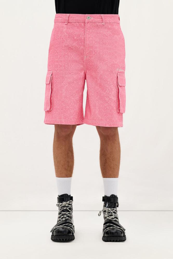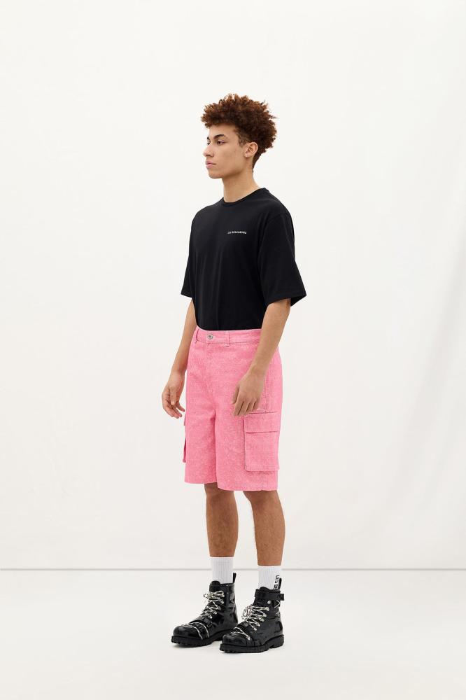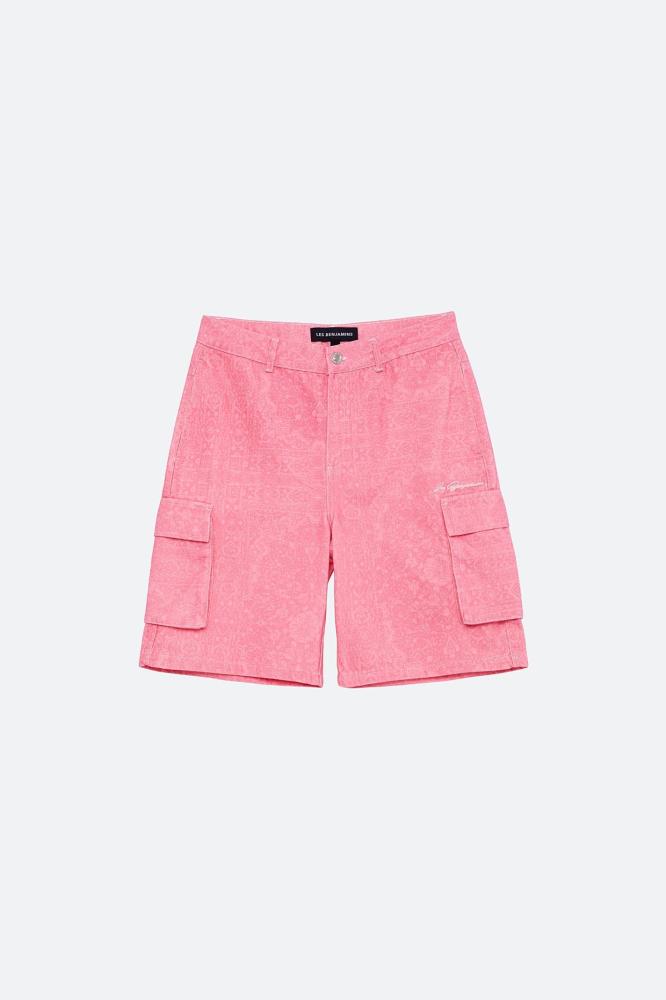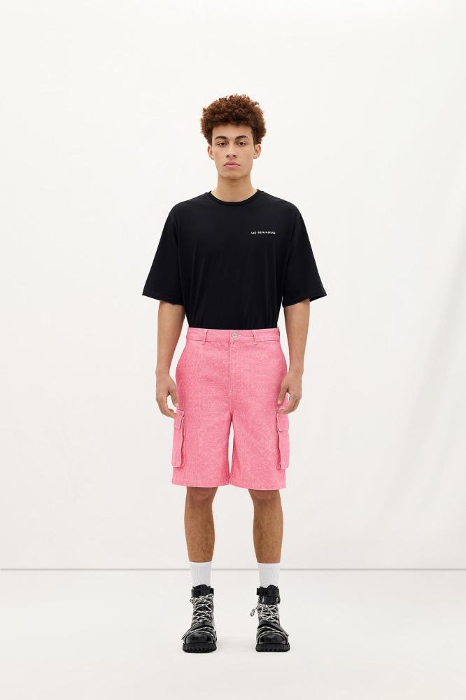 شورت رجالي وردي بحلقات للحزام، يجمع بين الراحة والأناقة العصرية. يحتوي على جيوب ثلاثية الأبعاد في الأمام والخلف مع تفاصيل طباعة ليزر على السجادة، وتطريز شعار Les Benjamins الموسمي على الجهة الأمامية لمسة مميزة لكل إطلالة.