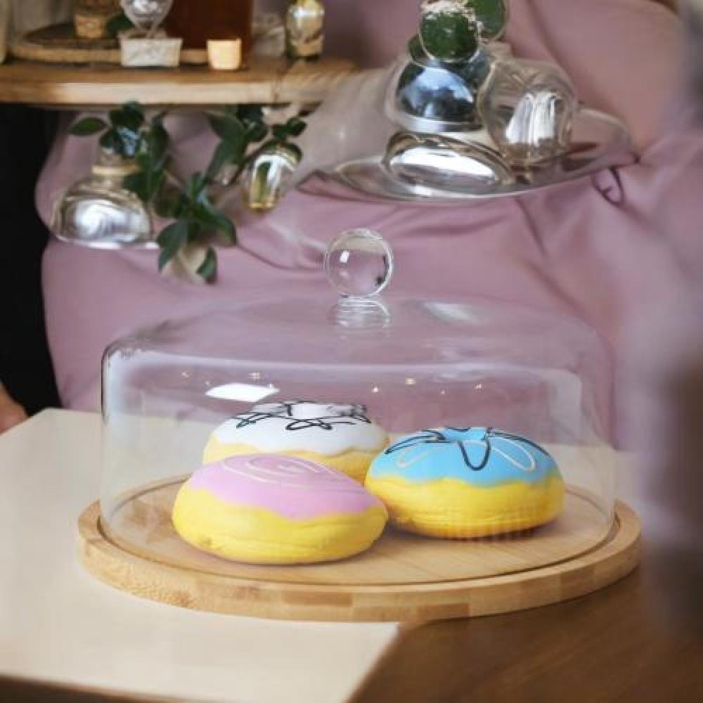 ليش تشتري صحن تقديم الكيك؟ لأن هذا الصحن هو الاختيار المثالي لإضافة لمسة من الأناقة إلى ضيافتك وحفظ الحلويات طازجة لفترة طويلة. مع تصميم فاخر وقاعدة خشبية ثابتة، سيضفي هذا الصحن جمالًا على طاولتك في كل مناسبة. مصنع من أكريلك عالي الجودة، سهل التنظيف، وخفيف الوزن، مما يجعله عمليًا في الاستخدام اليومي وكذلك في المناسبات الخاصة.
