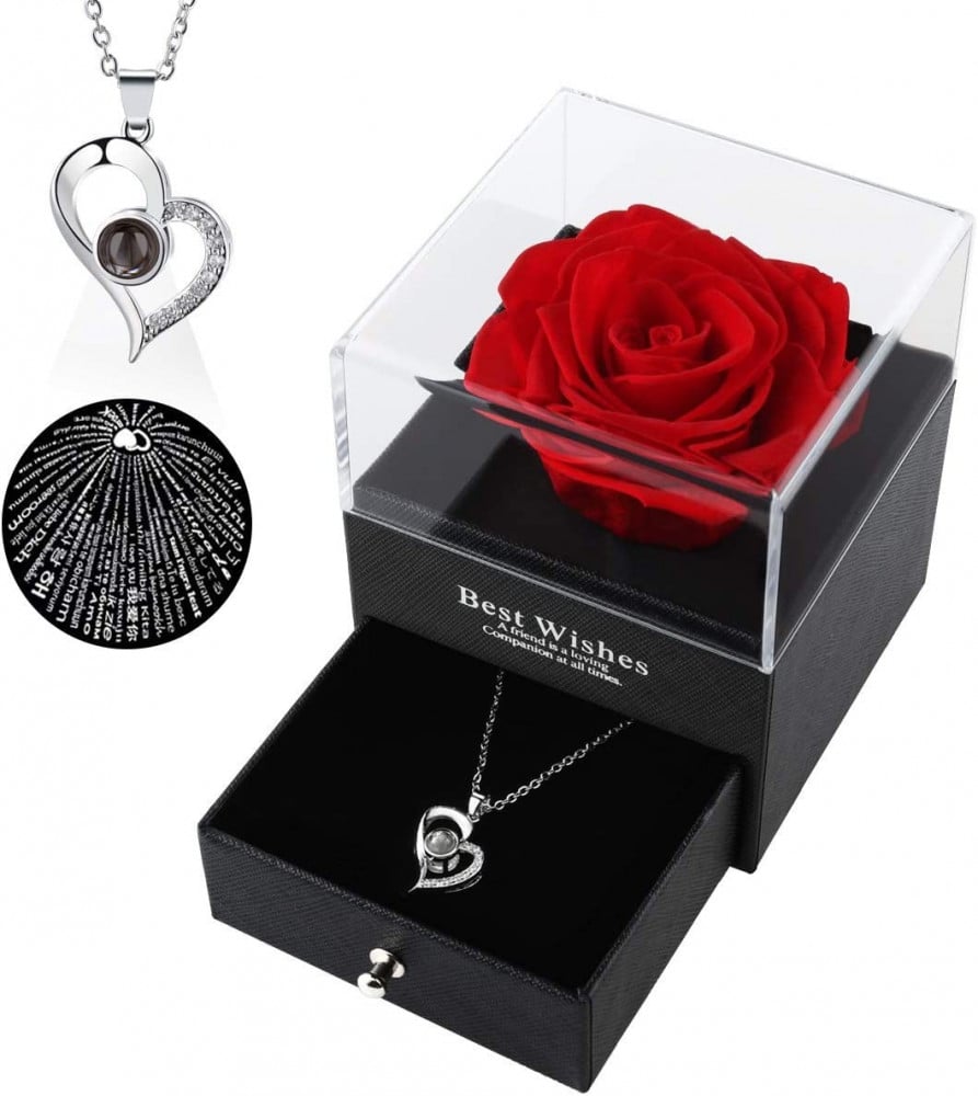 "السعادة الأبدية" و "الجمال الأبدي". إرسال الزهور الأبدية للفتيات في عيد الحب ليس فقط تعبيرا عن الحب ولكن أيضا وعد "البقاء معا إلى الأبد". إذا كنت تبحث عن طريقة فريدة للسماح لهذا الشخص الخاص في حياتك تعرف أنك تحبهم ، ثم هذا “100 لغات أحبك قلادة” ومجموعة الورد المحفوظة هو بالتأكيد افضل خيار لكم.