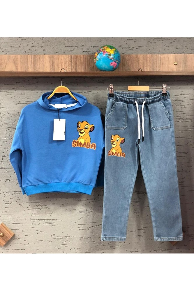 طقم أولادي من سويتشيرت أزرق و بنطلون جينز من milano-kids - أصلي