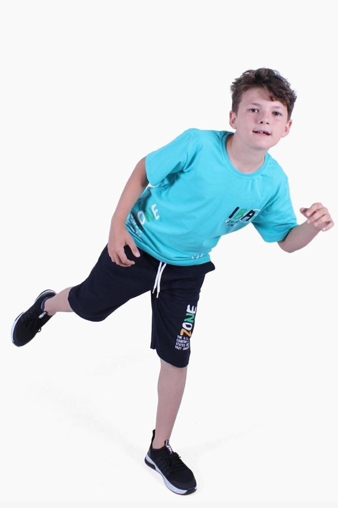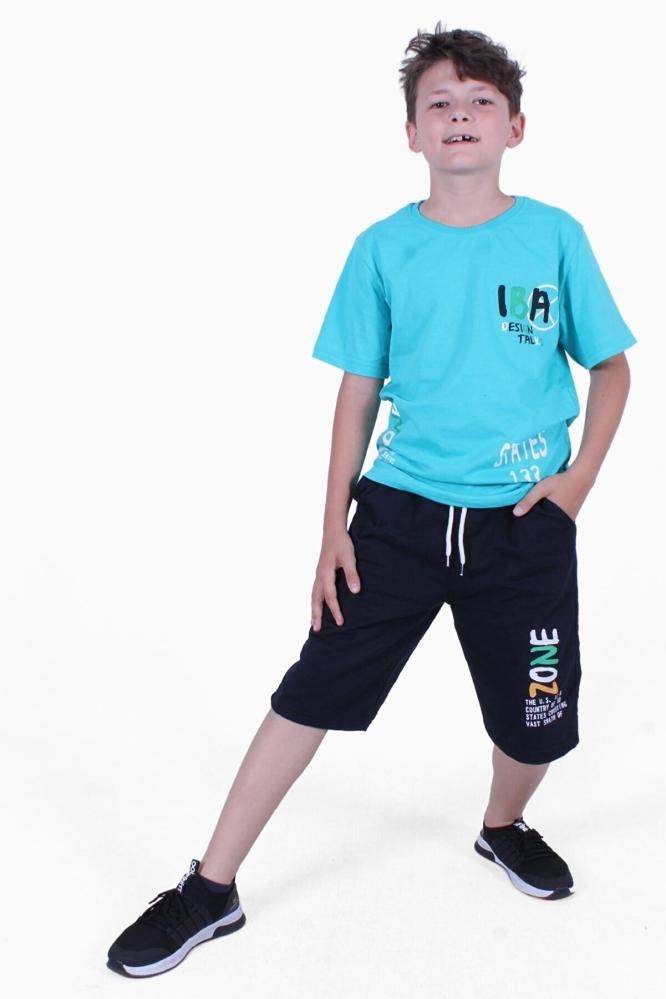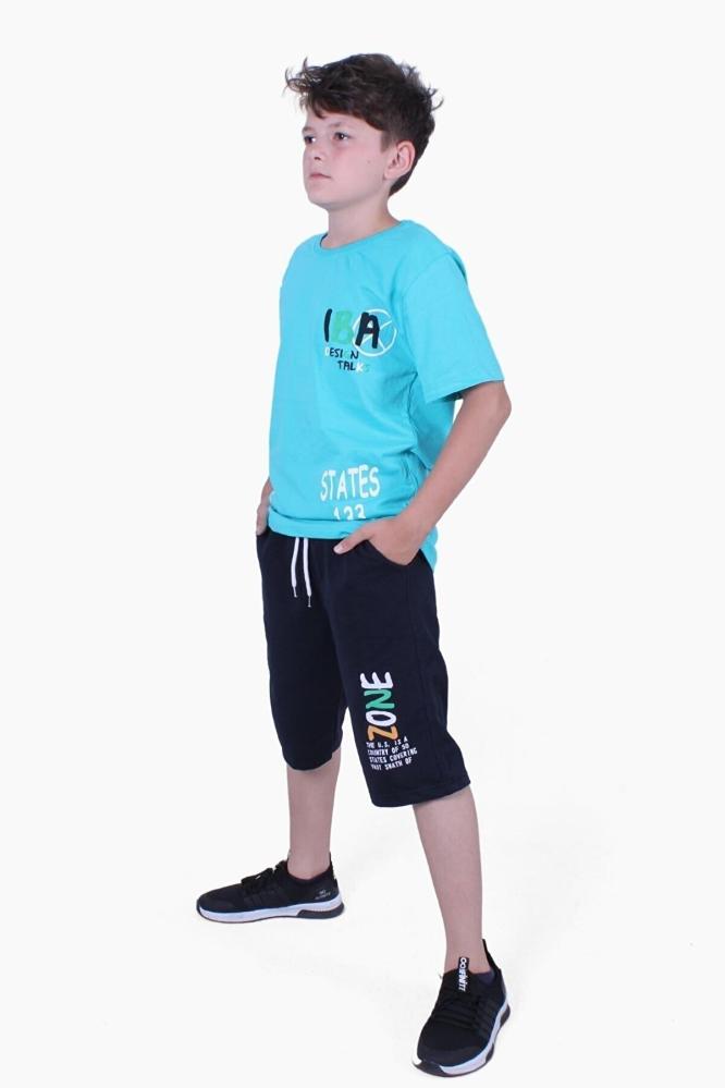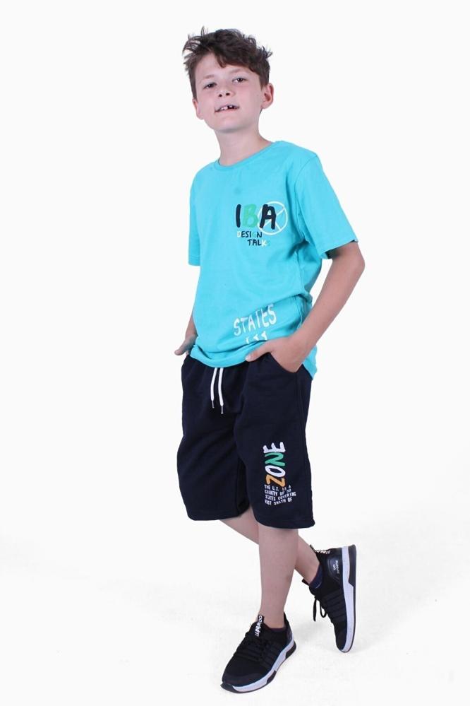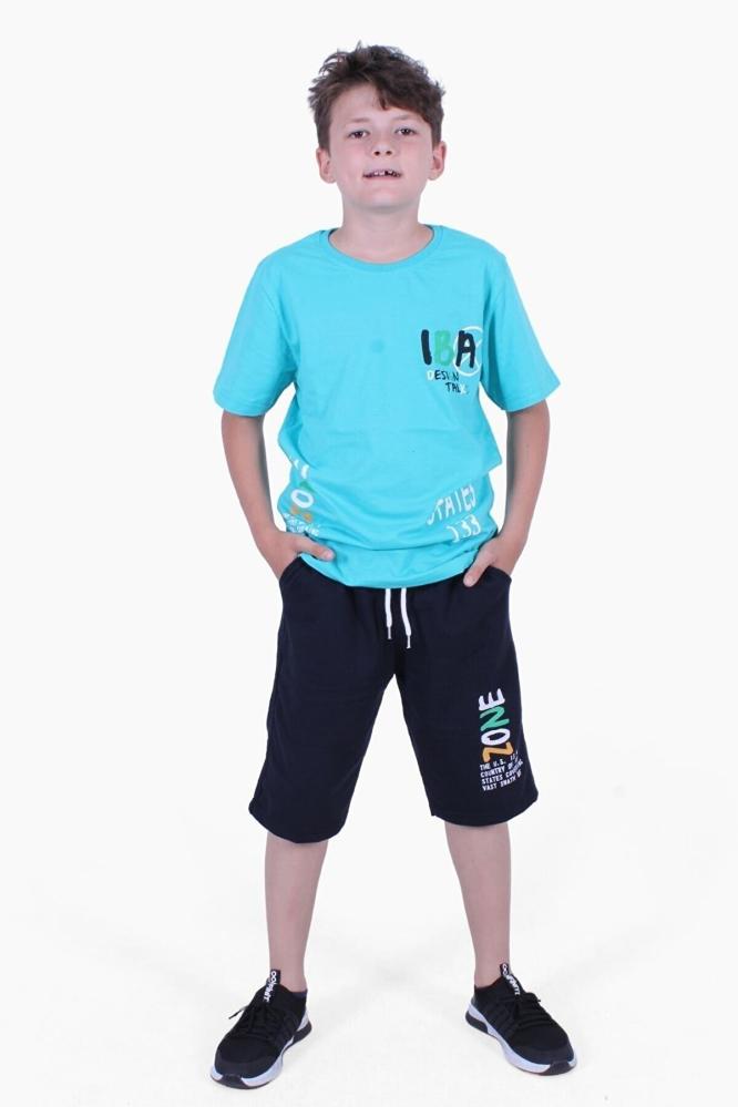 طقم اولادي تيشيرت تركواز و شورت اسود من panio-kids - أصلي