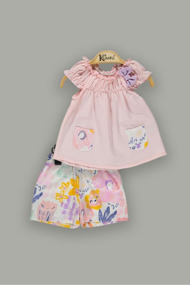 طقم بناتي من فستان و شورت روز منقوش من didustore - أصلي