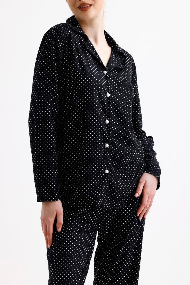 • طقم بيجامة نسائي من جلد الغزال بأزرار أمامية | رقصة البولكا نقطة سوداء