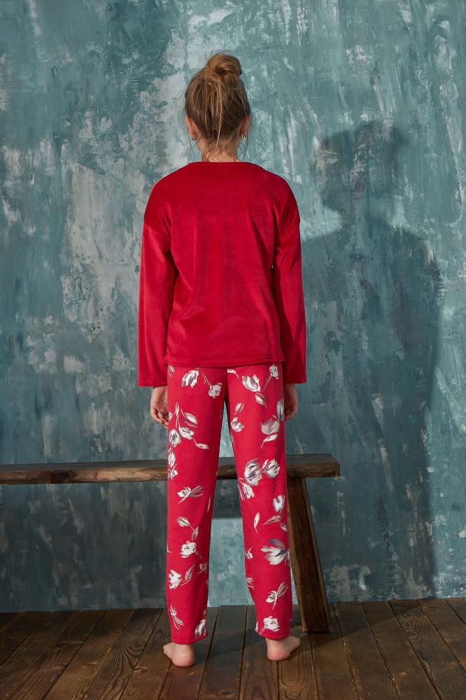 طقم بيجامة مخملية حصرية للفتيات منقوشة باللون الأحمر من Pijamaevi