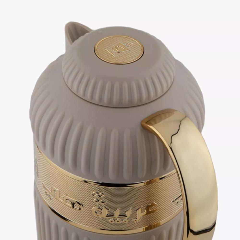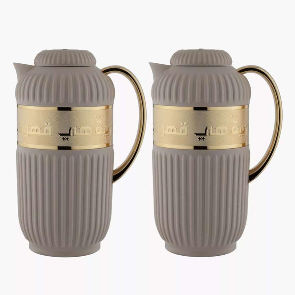 ودك تضيف لمسة فخامة لمناسباتك وجمعاتك؟ جبنا لك طقم الترامس اللي يجمع بين الأناقة والجودة العالية. تصميم راقي ولمسة ذهبية تزيد من فخامة المكان. يعني تقدر تقدم قهوتك وشاييك بأسلوب يبيض الوجه قدام ضيوفك.
