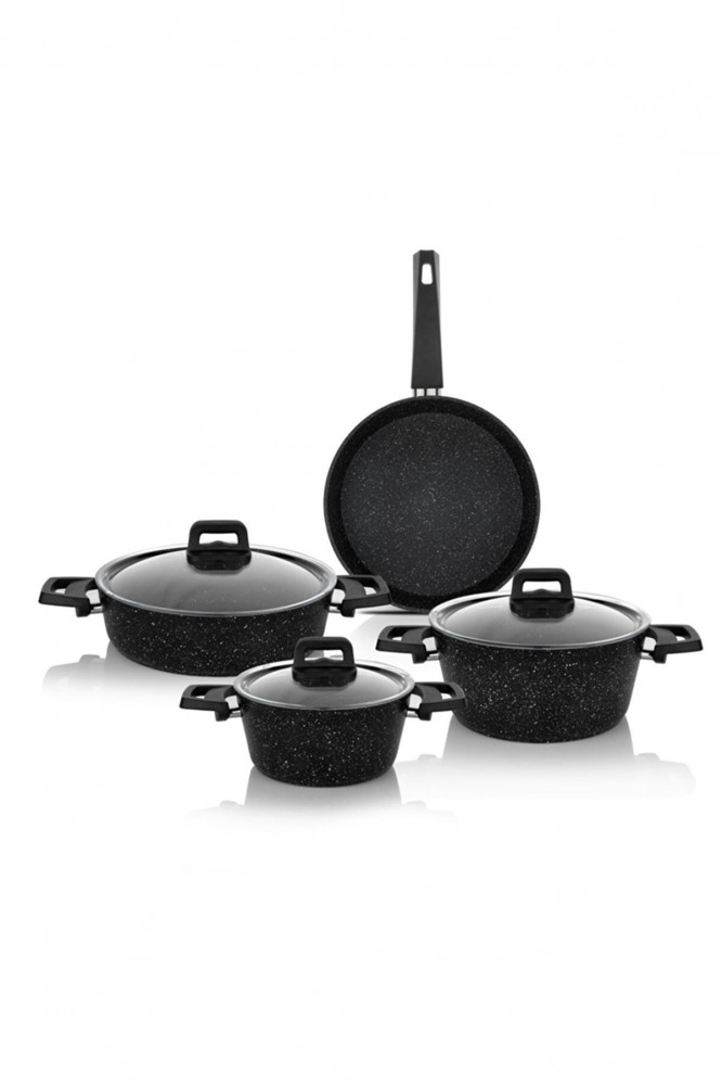 - طقم أواني طهي روك جرانيت عدد القطع: 7 ألوان: أسود محتويات الطقم: - حلة عميقة 18 سم - حلة 22 سم - حلة مسطحة 26 سم - مقلاة 26 سم