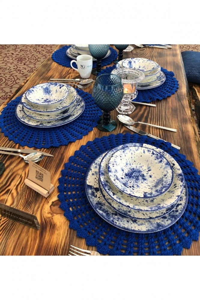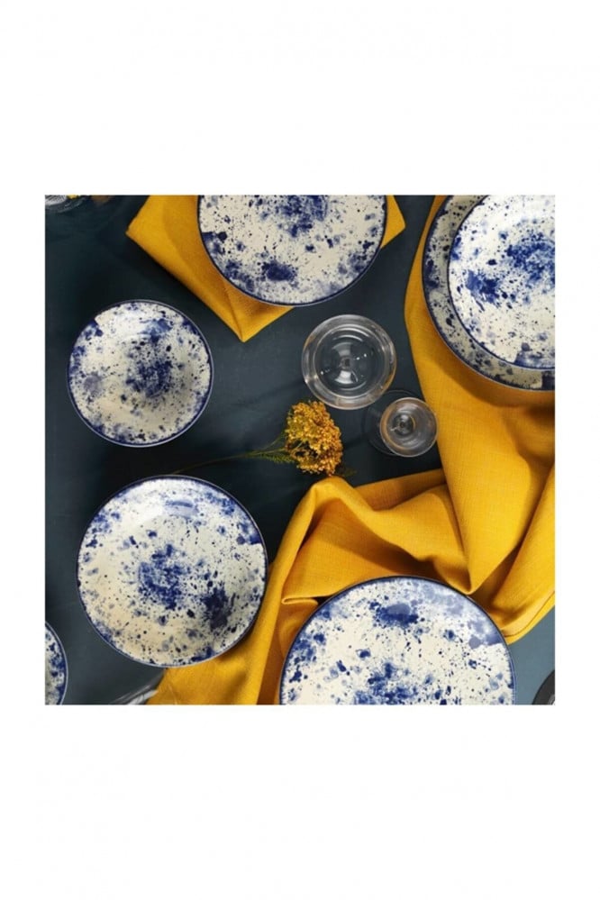 طقم طعام 24 قطعة بورسلين أبيض و أزرق من Kütahya Porselen - أصلي