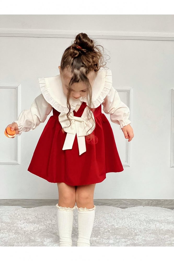 طقم فستان بناتي أحمر من Elisha - أصلي