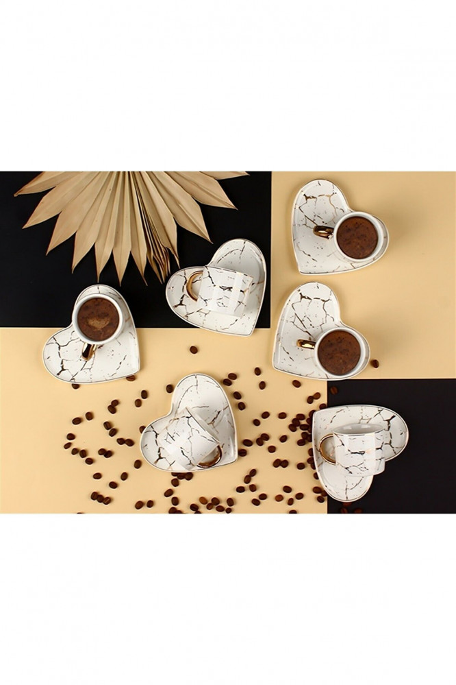 طقم فناجين قهوة 12 قطعة 6 أشخاص مزين بالذهب على شكل قلبمن بورسلينالتوصيل للمنزل من 7 أيام حتى 12 يوم عمل