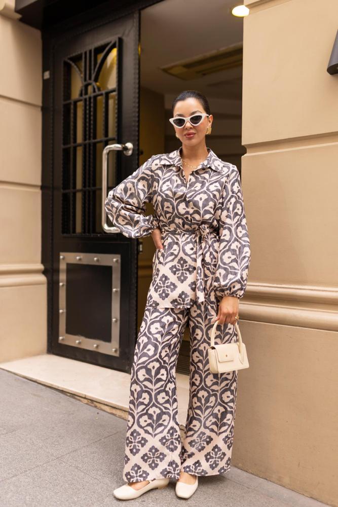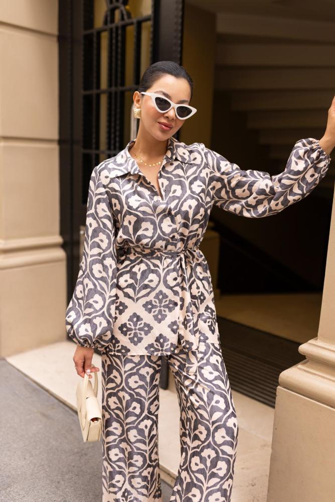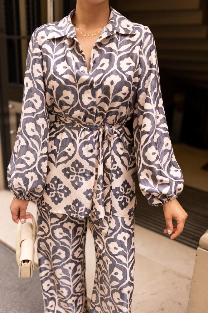 طقم نسائي من قميص و بنطلون منقوش من ASKI - أصلي