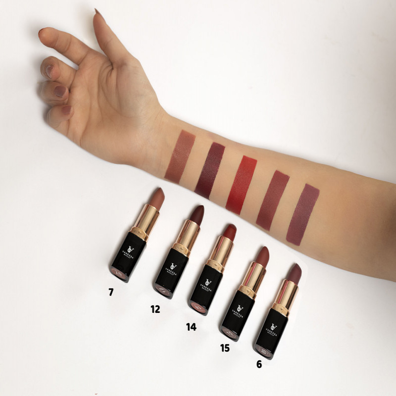 أحمر شفاه مات 10 من فانيسا ميك اب هو الاختيار المثالي لإطلالة شفاه جذابة وثابتة طوال اليوم. بتركيبته عالية الصبغة، يمنحك هذا المنتج لونًا غنيًا وكثيفًا مع لمسة نهائية مخمليّة مطفية تضفي لمسة من الفخامة على مكياجك.