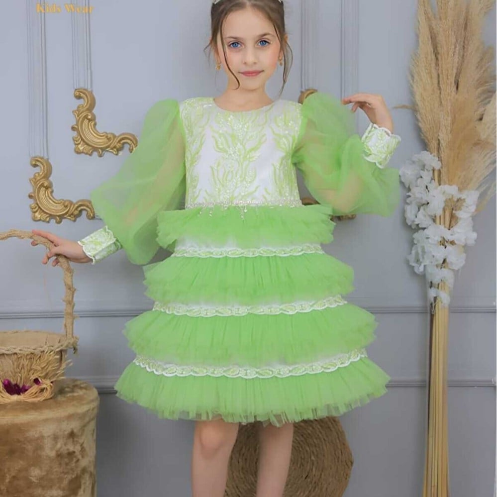 فستان بناتي أخضر فاتح بكرانيش تل من maramm - أصلي