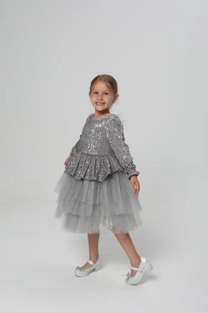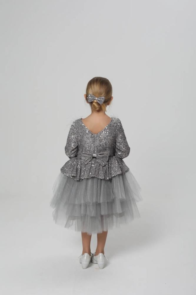 فستان سهرة للأطفال مزين بالترتر باللون الرمادي من Miço Kids