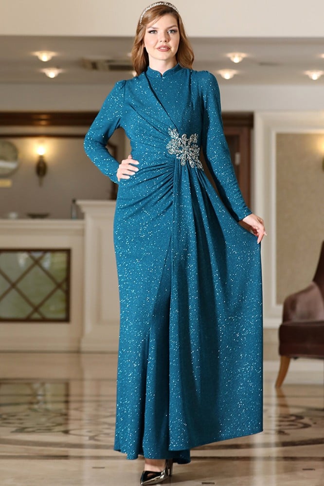 فستان سهرة نسائي بترولي بتطريز من tesetturabiye - أصلي