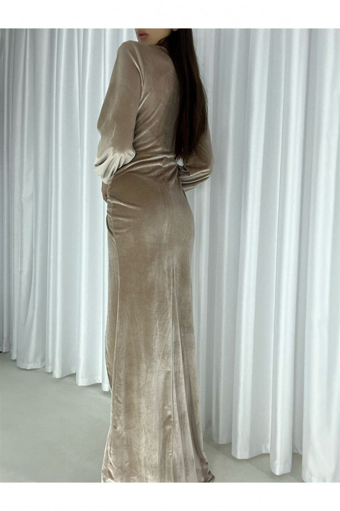 فستان سهرة نسائي بيج مخملي من mafdress - أصلي
