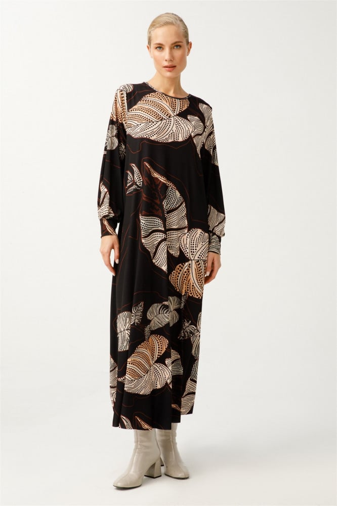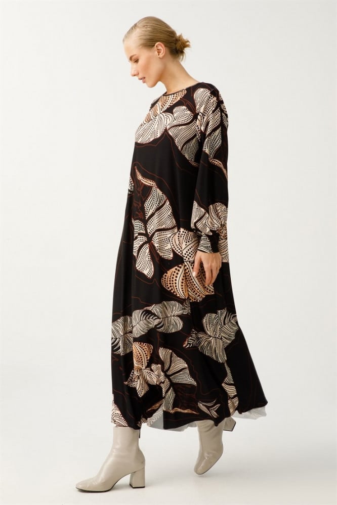 فستان منقوش لون اسود NOI