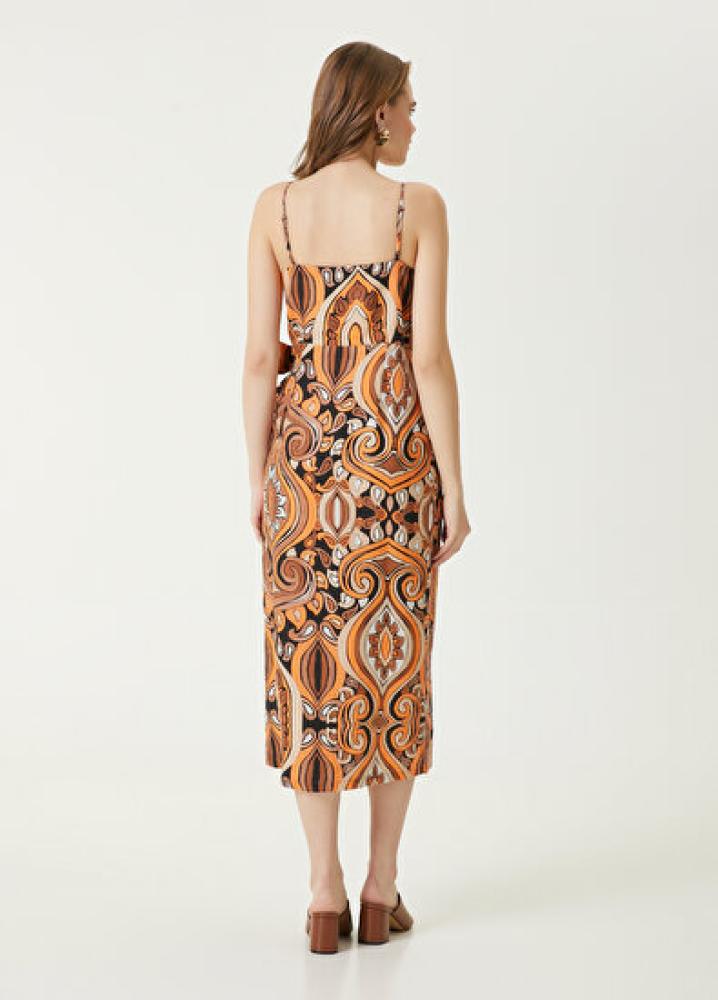 فستان ميدي من الكتان باللون البني منقوش من BEYMEN