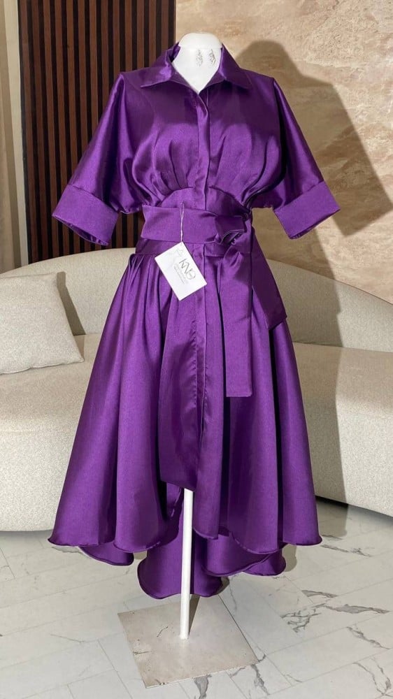 الوصف :فستان ناعم كم قصير بف باللون الموف